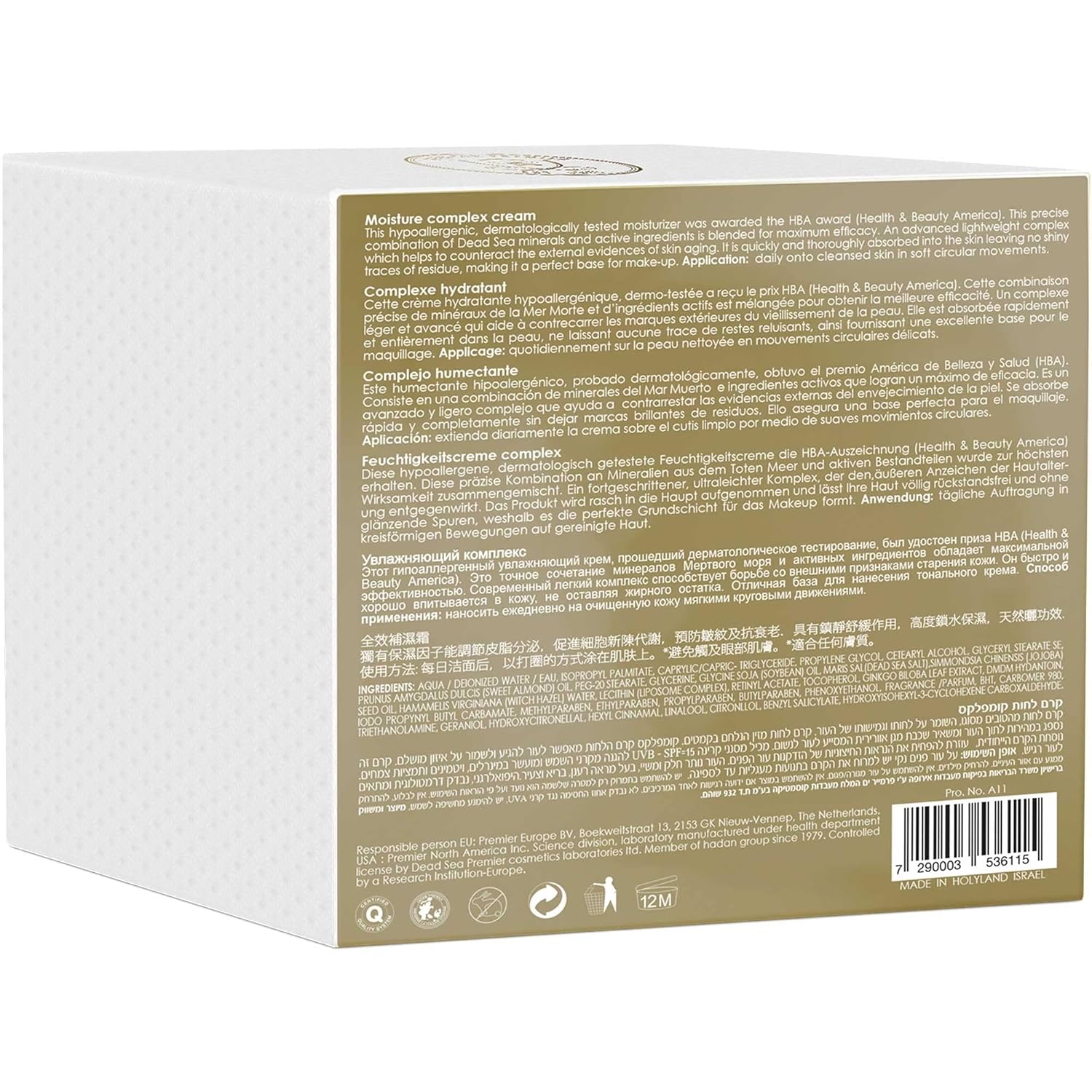 Premier Dead Sea Classic moisture complex cream normal to dry skin, sensitive skin, Anti-Aging to Smooth Wrinkles, Lightweight, Non-greasy Facial Cream, Vitamin A & E, Ginkgo 2.4 FL.oz