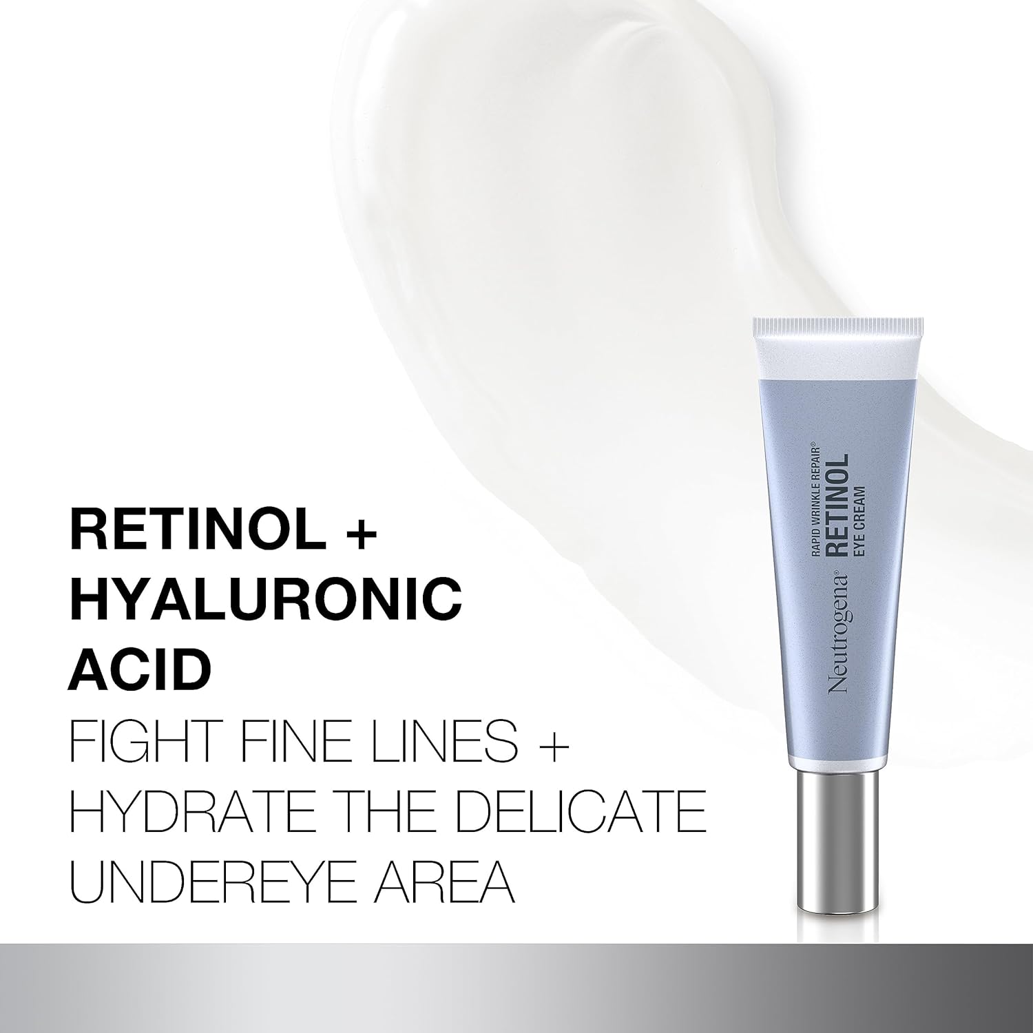 - 0.5-fluid ounce tube of Neutrogena Fragrance-Free Rapid Wrinkle Repair Retinol Anti-Wrinkle Eye Cream with retinol & hyaluronic acid to target crow's feet, fine lines & dark circles. Your Rapid Wrinkle Repair just got upgraded, now with a soothing complex