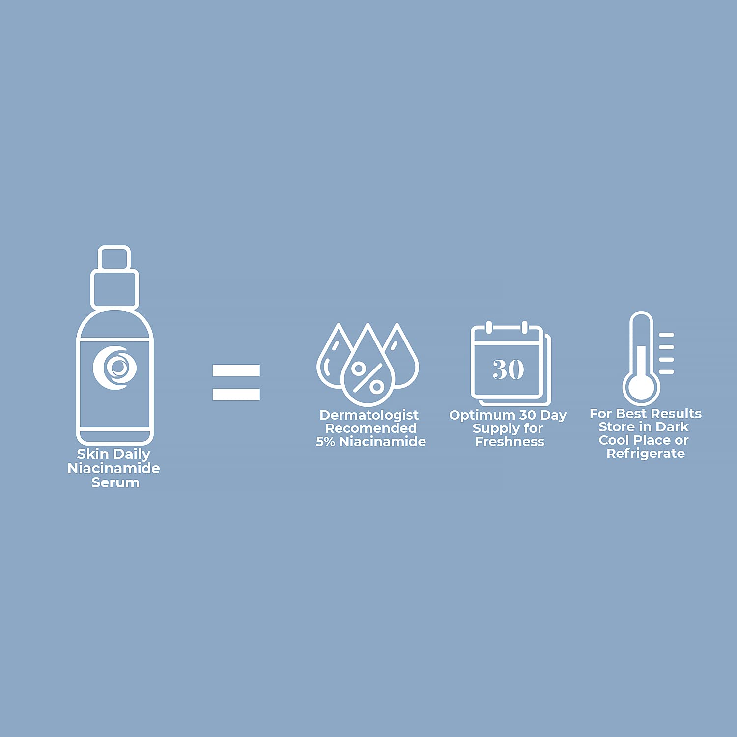 - 1oz dark amber glass bottle of Niacinamide and Hyaluronic acid active ingredient. 1 month supply for optimum freshness. Once opened, store in a dark cool place or refrigerate.