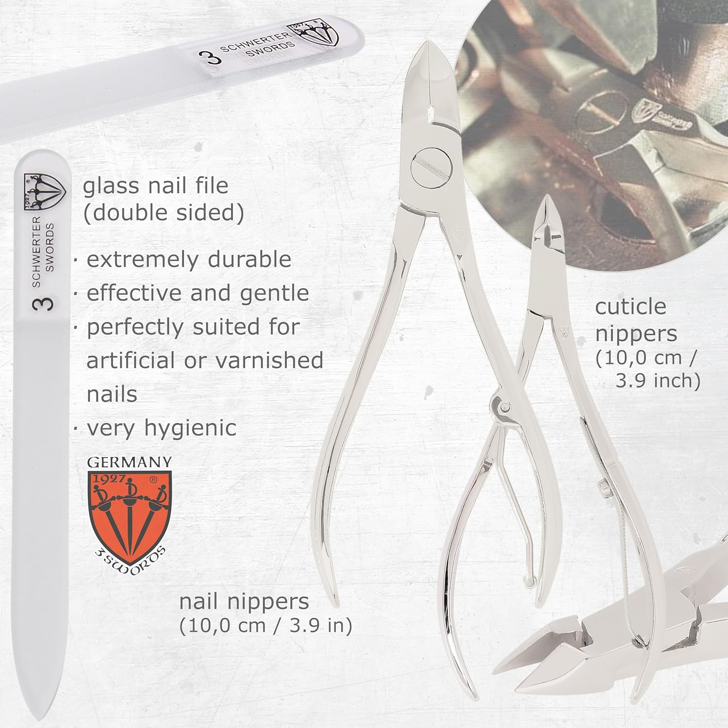 - NAIL CARE KIT from 3 Swords Germany with professional manicure and pedicure tools. Our sets for home and travel use convince trough highest levels of quality, modern design, durability and German engineering combined with a first class customer service.