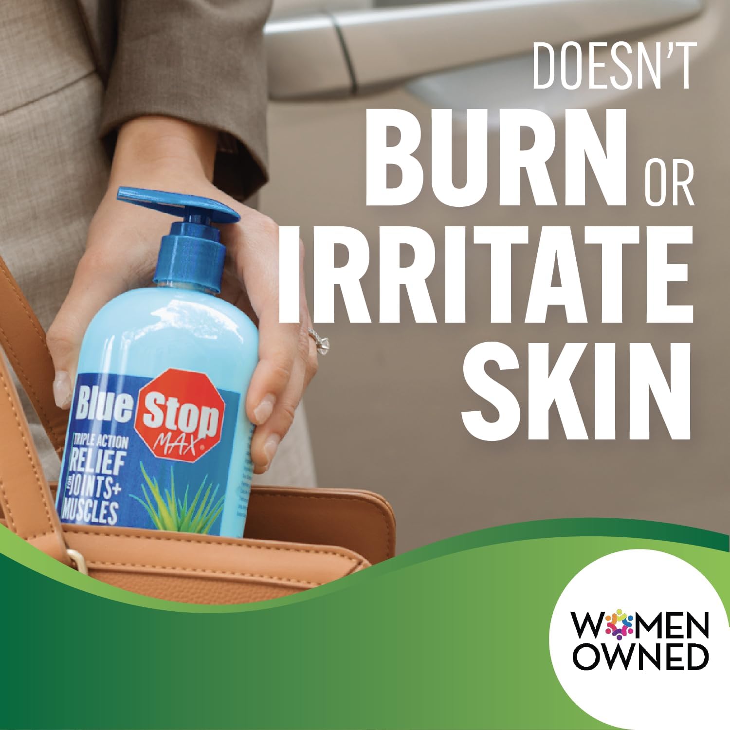 Blue Stop Max Massage Gel for Body Aches, 8 oz Pump Bottle; 3 in 1 Product Relieves Body Aches, Supports Joints and Nourishes The Skin