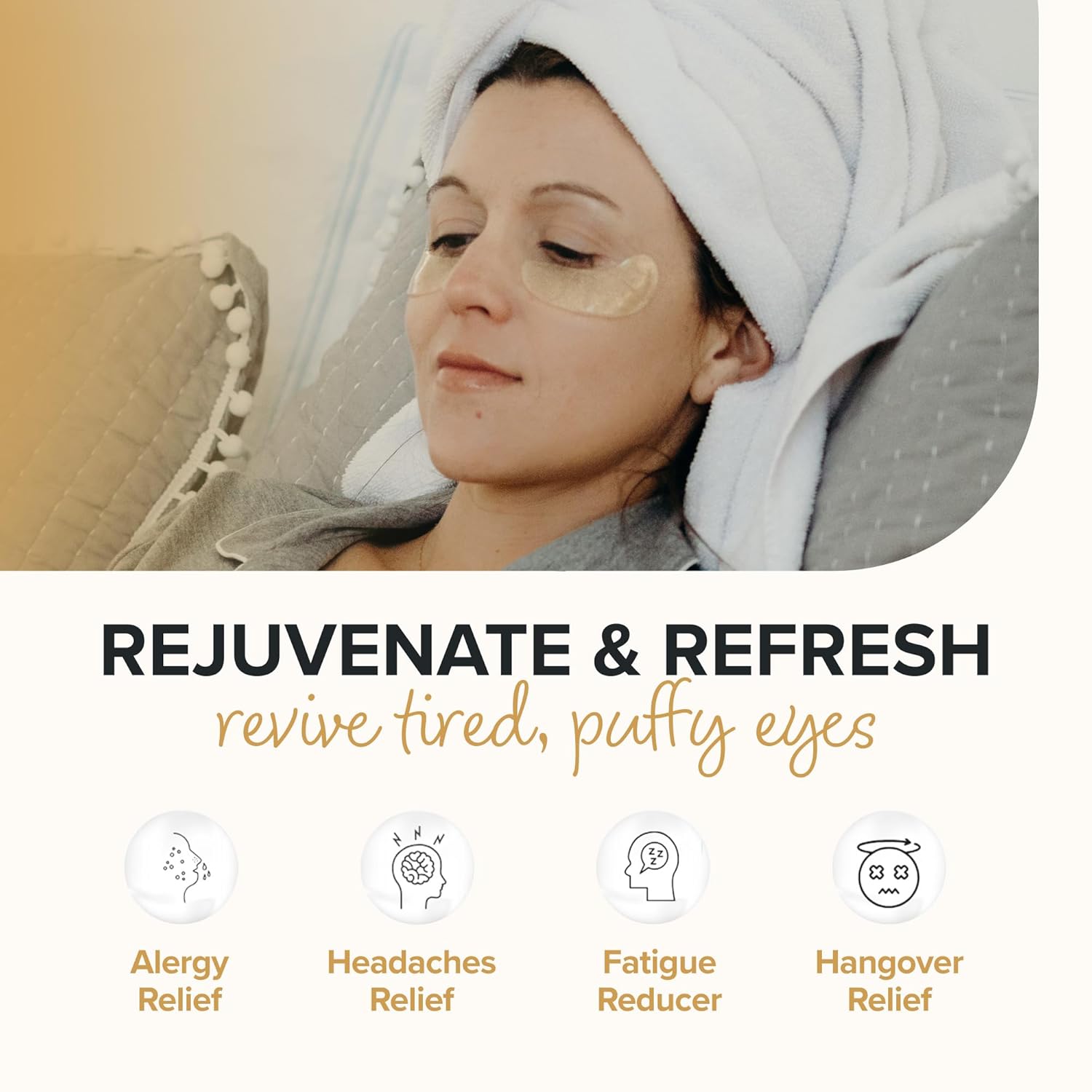 - COOL, SOOTHING RELIEF. When headaches, allergies, late nights or fatigue cause your eyes to look tired, these clean collagen eye pads moisturize, plump and add nutrients to the delicate under-eye zone, creating a more relaxed and refreshed appearance.