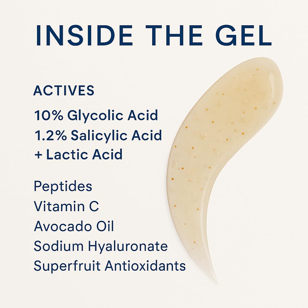 - EXFOLIATING FACE WASH - Anti Aging face exfoliator gel that contains 10% Glycolic acid with Lactic Acid. Enhanced with alpha-hydroxy acids (AHA) & beta-hydroxy acid (BHA). This salicylic acid cleanser is able to deeply cleanse, penetrate, unclog & minimize pores of irritants and bacteria. Brightens and helps reduce acne, wrinkles and fine lines.