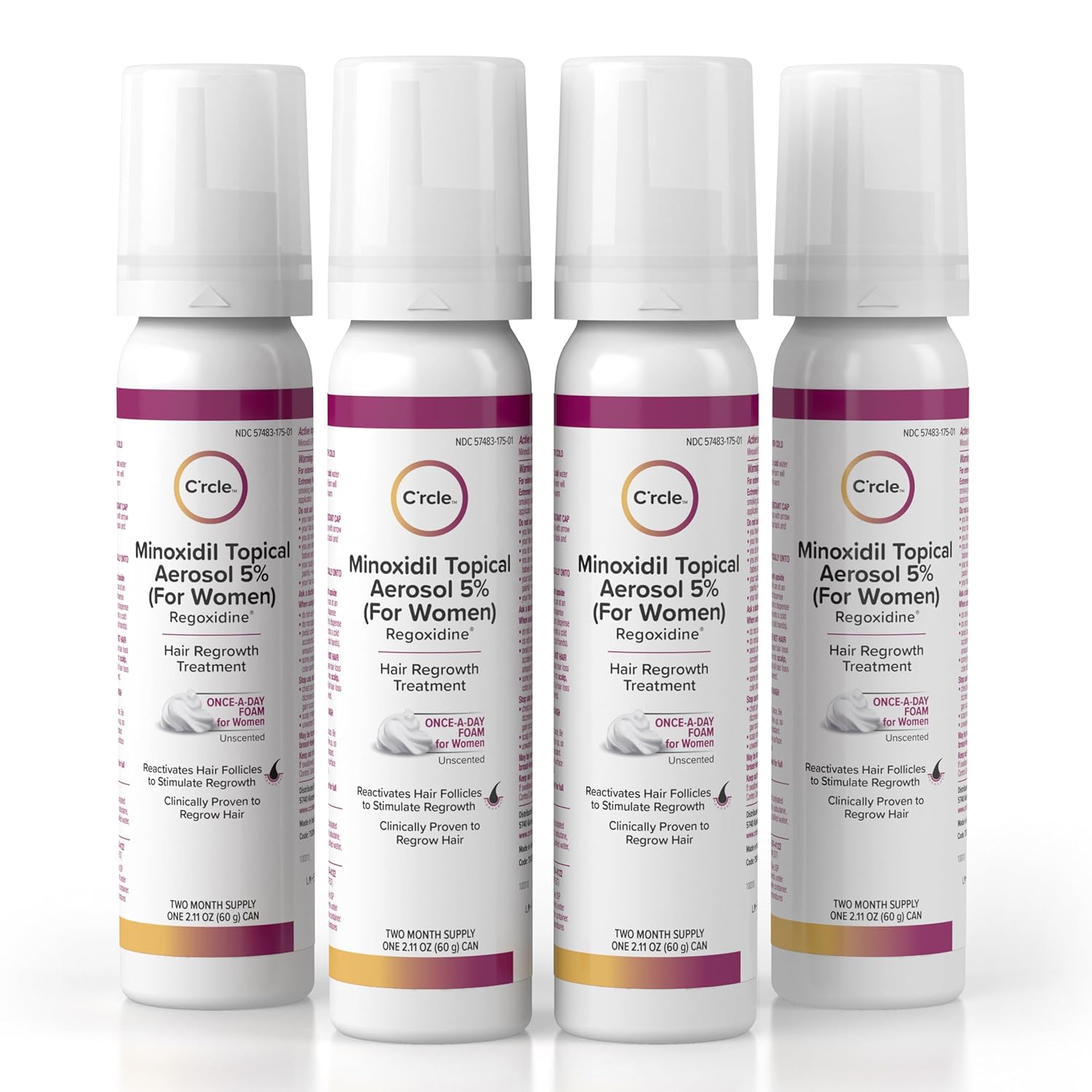 - 5% MINOXIDIL FOAM FOR WOMEN — This topical foam minoxidil offers a generous eight-month supply of hair regrowth treatment for women, specifically designed to help combat thinning at the top of the scalp. C'rcle, containing 5% minoxidil foam, is a scientifically formulated topical aerosol hair thinning treatment tailored for women. It targets the root cause of hair loss by helping to reactivate hair follicles and is ideal for those experiencing pattern hair loss.
