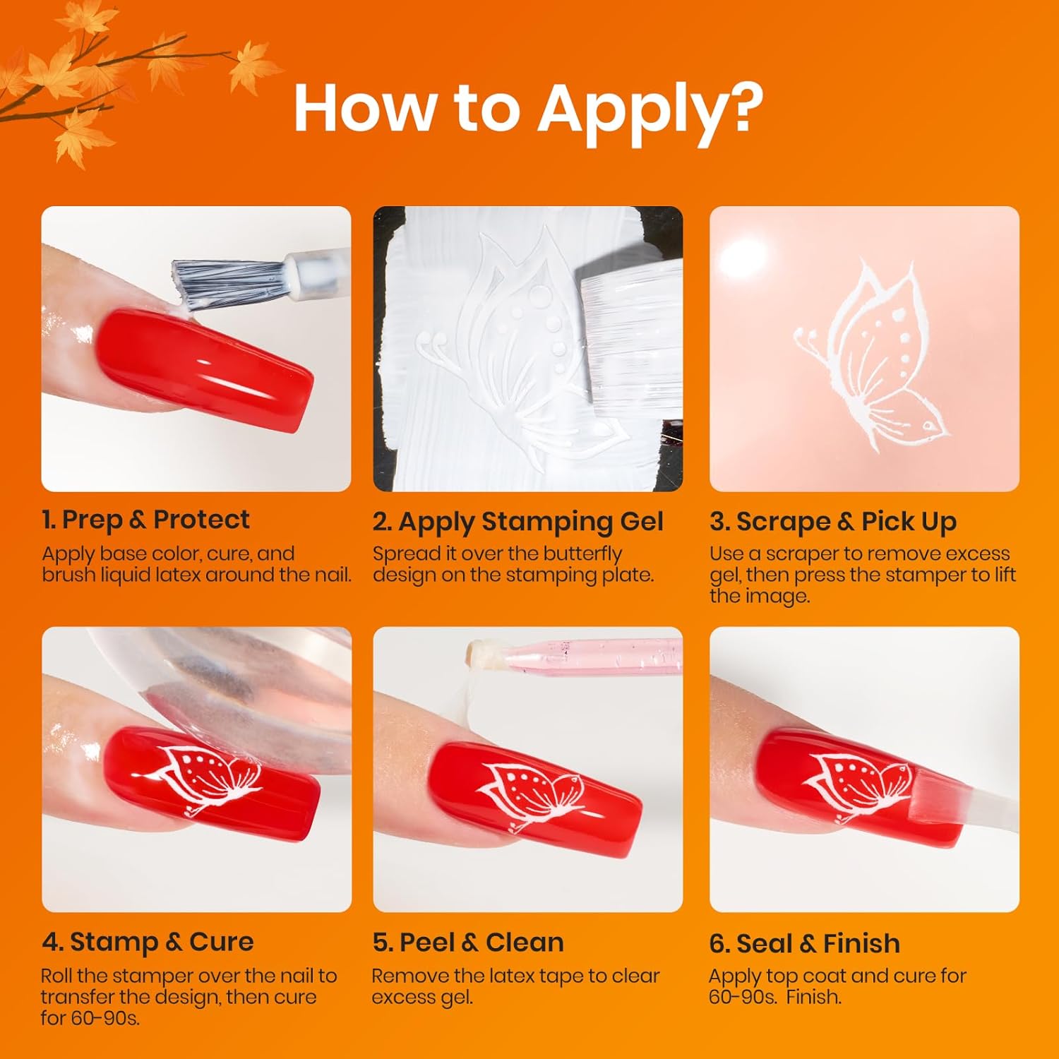 • Using Step: 1. Apply to areas where you want free of polish. 2. Allow to dry for 1-2 minutes until it turns clear. (This step is crucial, otherwise it will affect your experience) 3.Create your desired nail art style(stamping, gradient, marbling or etc.) 4. Rub the edge of Latex Tape with your finger or tweezers and peel it off.