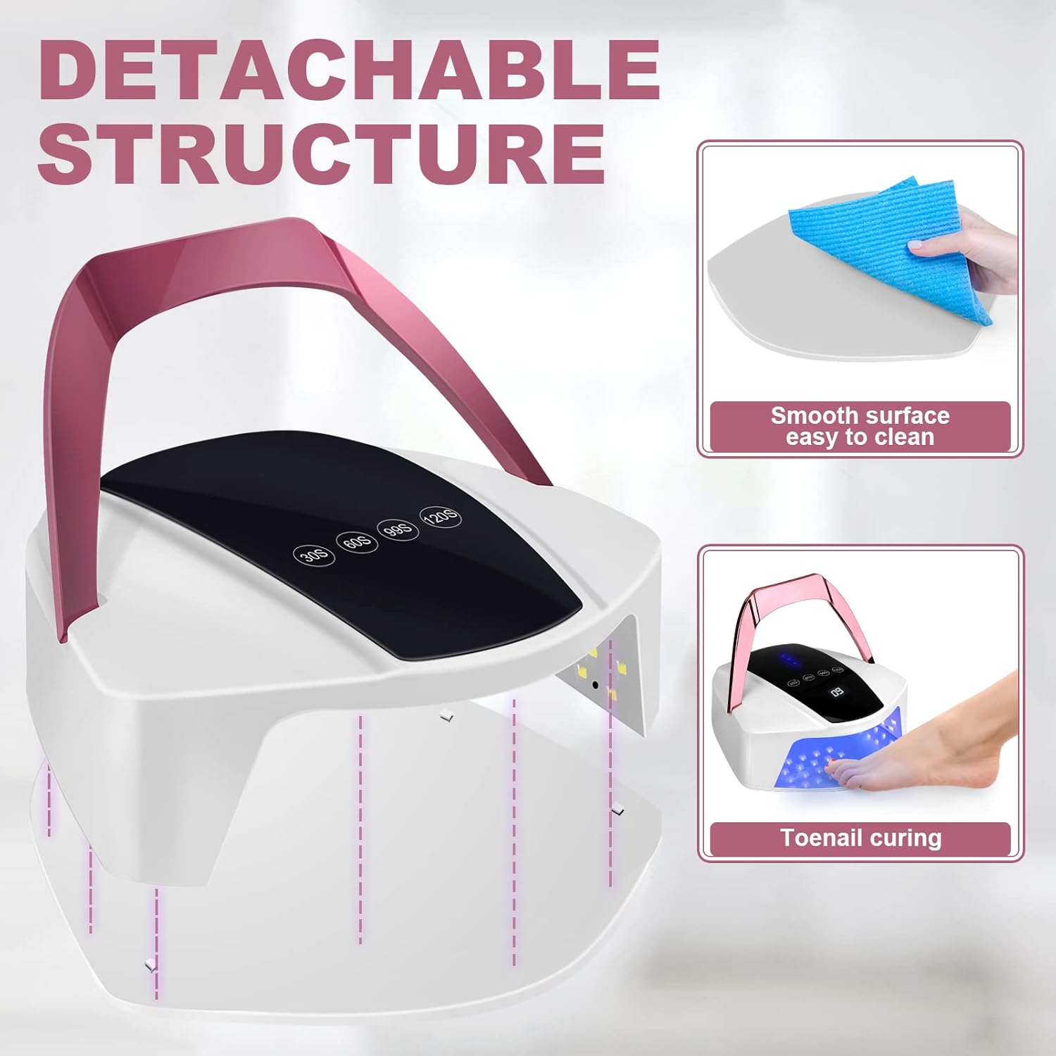 • Removable & Auality Assurance:The detachable base is easy to clean and keep sanitary.This led nail lamp uses premium quality materials.
