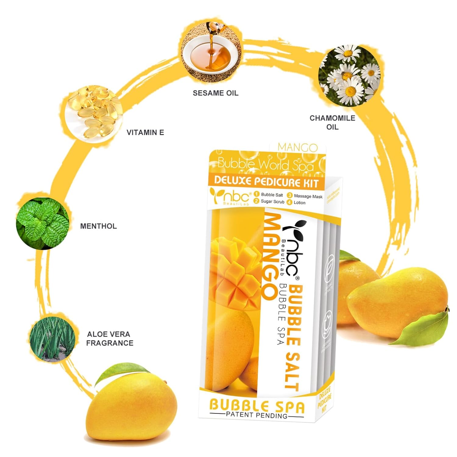 Pedicure Kit Foot Soak Set: Bubble Salt, Sugar Scrub, Massage Mask, Massage Lotion in a Box, 4 Step Foot Spa Kit for Dry Feet,Tired Feet(3 Set Mango)