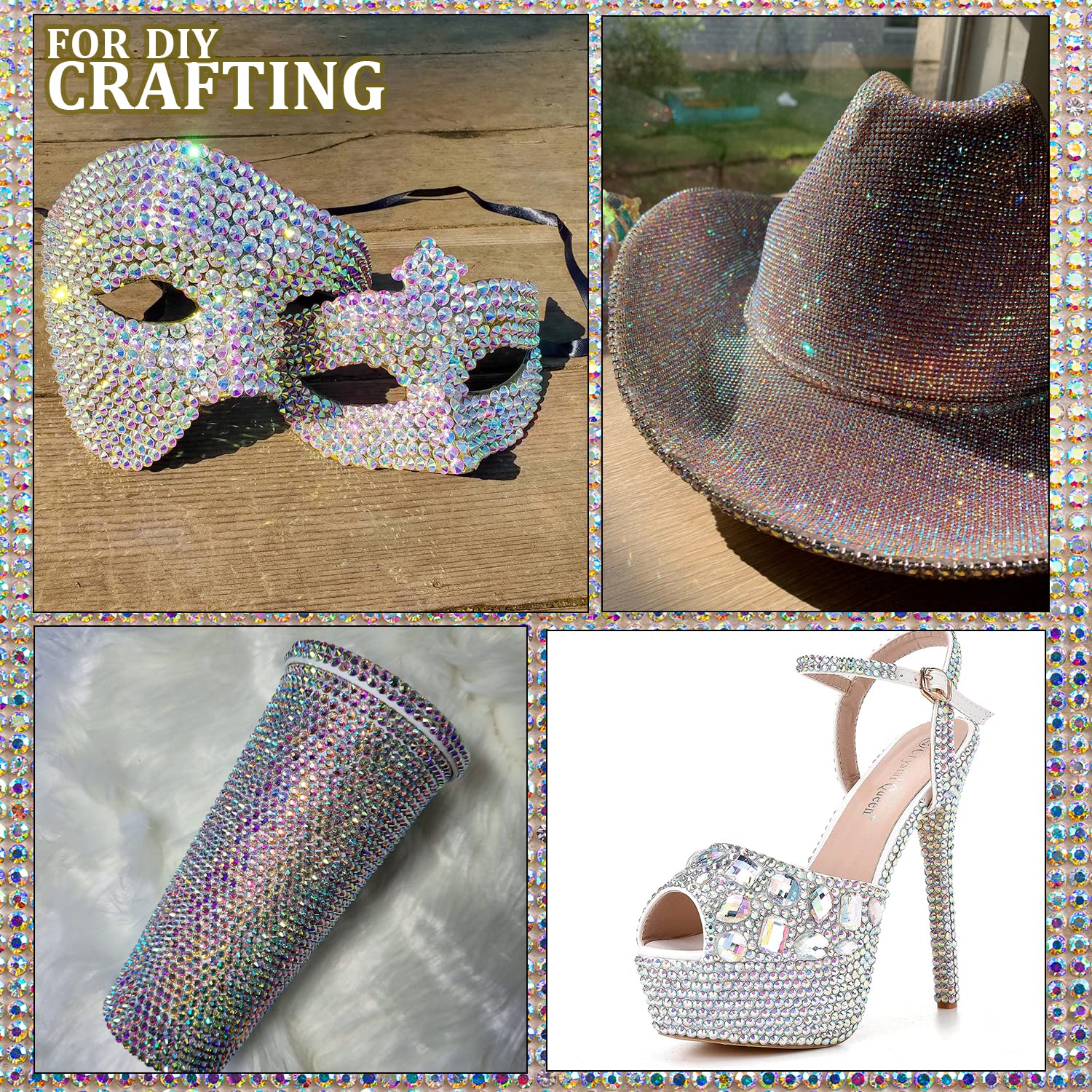 - ❤WIDE APPLICATION --The Nail Rhinestones Are Perfect for Creating 3D Nail Art or Decorating Jewelry, Makeup, Body Art, DIY Crafts, Wedding Dress or Shoes, Cell Phone Cases, Glasses, Greeting Cards, Bags, Guitars, Scrapbooks etc.