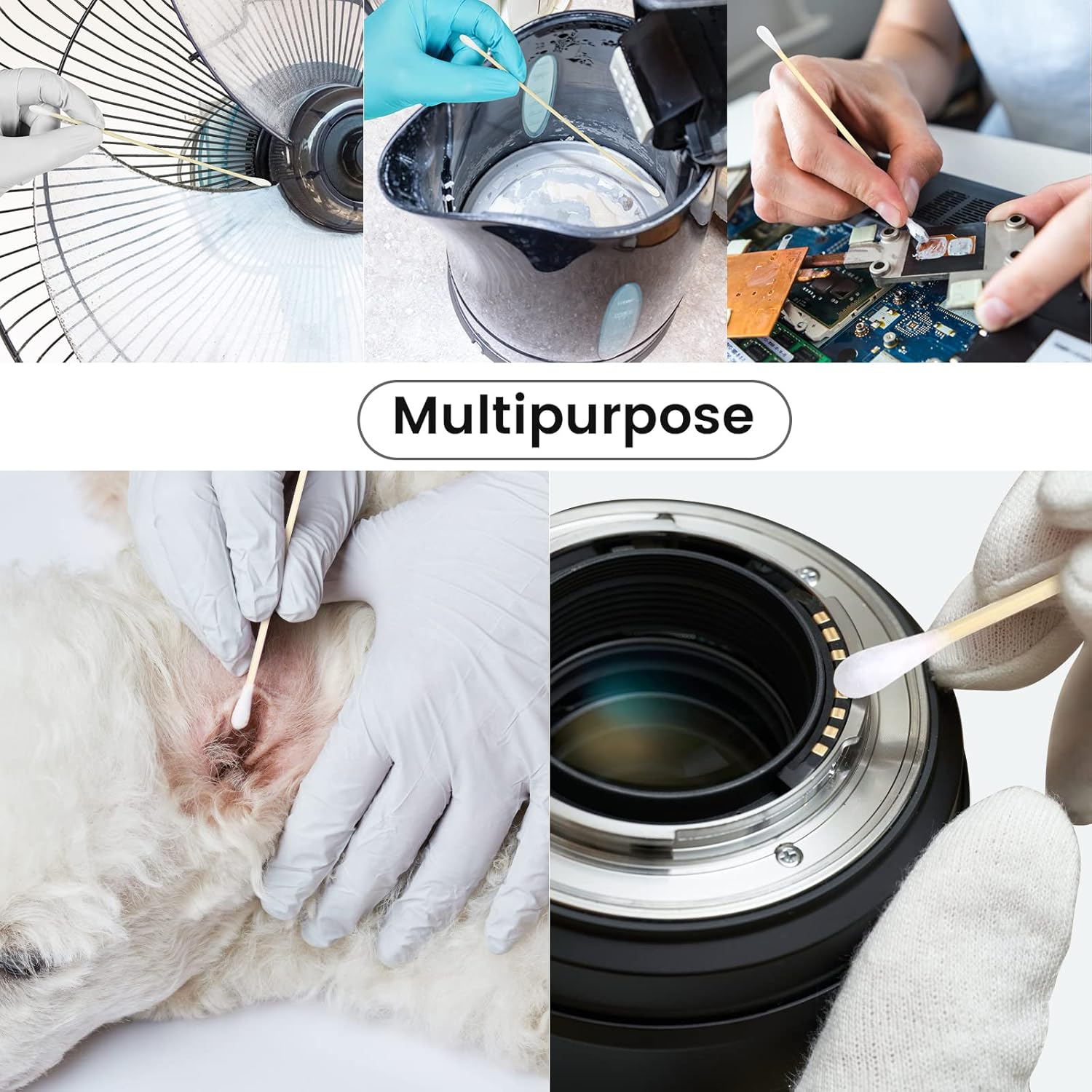 - MULTIPURPOSE: 400PCS (800 tips total) 6 cotton swabs in a plastic case, very conveniently to use. Cotton stick are a household must-have, ideal for gun cleaning, pet care, computer keyboards to electronics etc