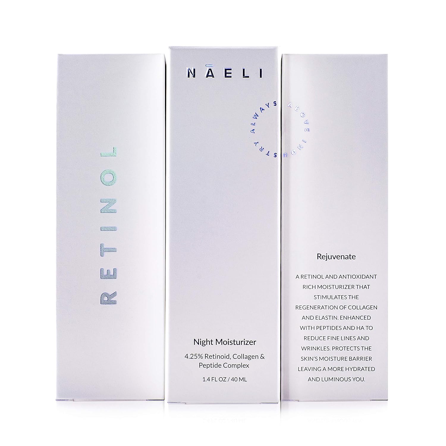 - NAELI RETINOL NIGHT CREAM - a potent anti aging 4.25% retinoid, collagen & peptide moisturizer cream that stimulates collagen, increases skin firmness and elasticity. Visibly smoothens fine lines, wrinkles and prevents aging.