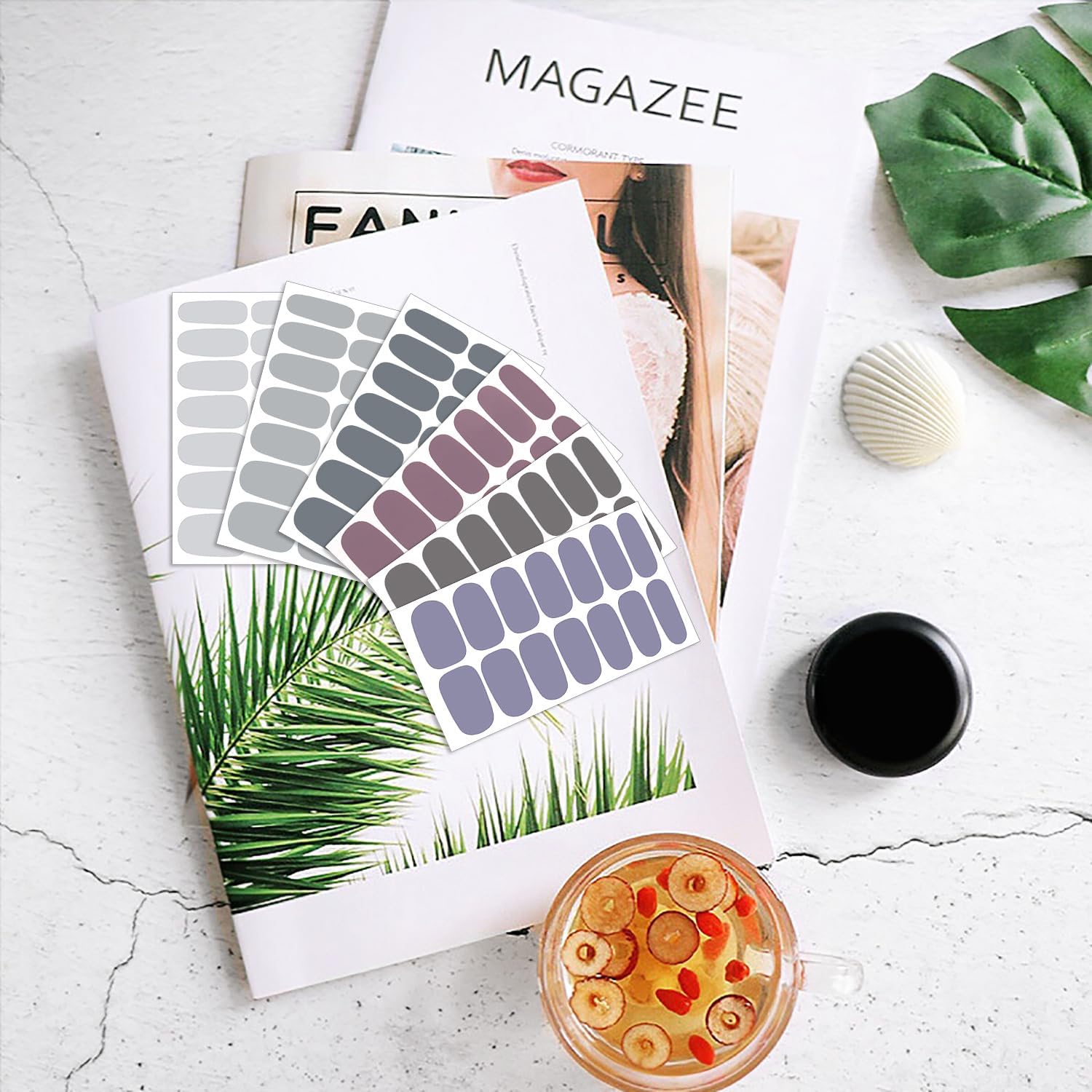 - [Package Included] 16 sheets nail polish strips for women + 1pc nail files + 1pc wood cuticle stick. each nail strips has 14 pieces nail tips and 7 sizes, suitable for most people's nail size.