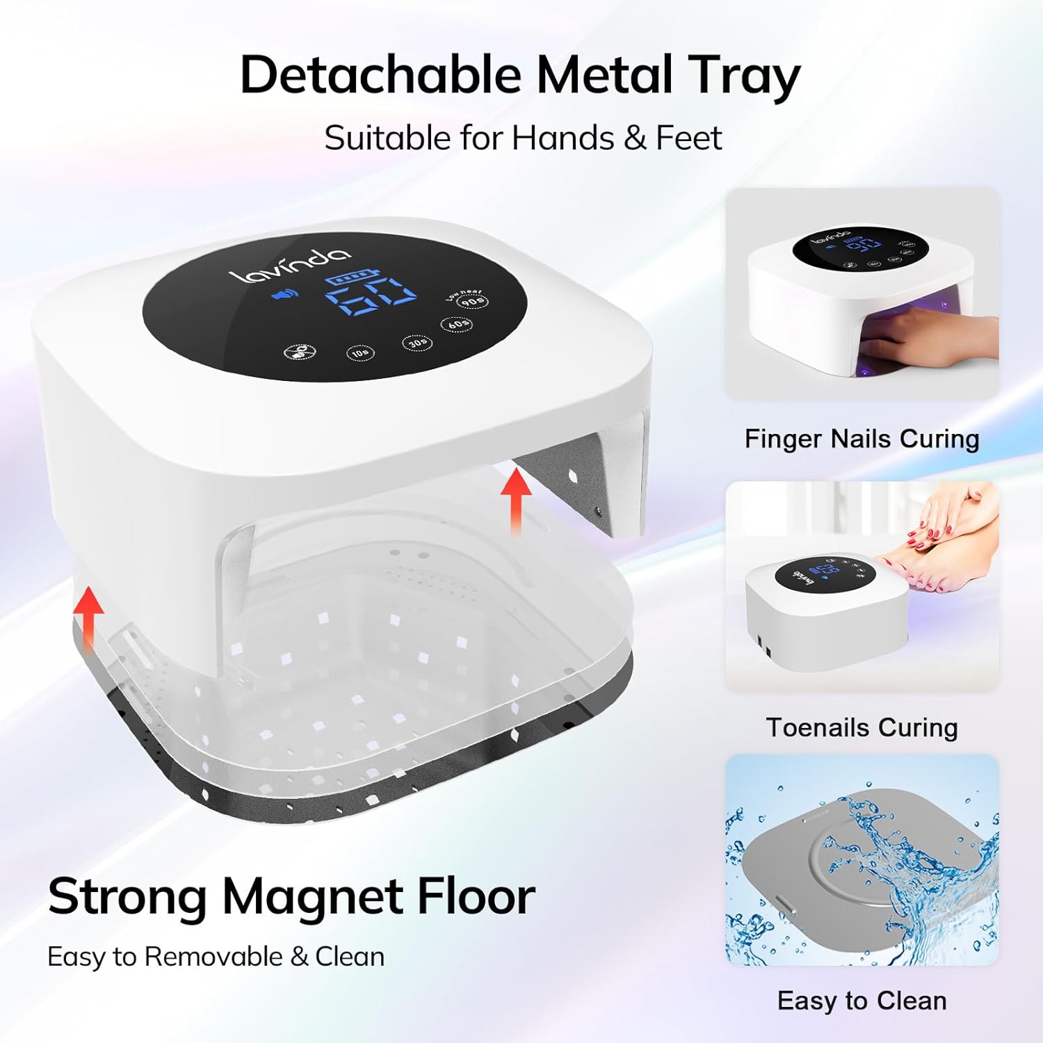- 【Detachable Base & Large Space】The gel nail polish UV lamp has a removable magnetic base that makes it easy to remove and clean, and the large space ensures cure five fingernails or toenails. In addition, the metal mirror base can better refract the light source and quickly dry the nails evenly. It is ideal for professional salon and home use.