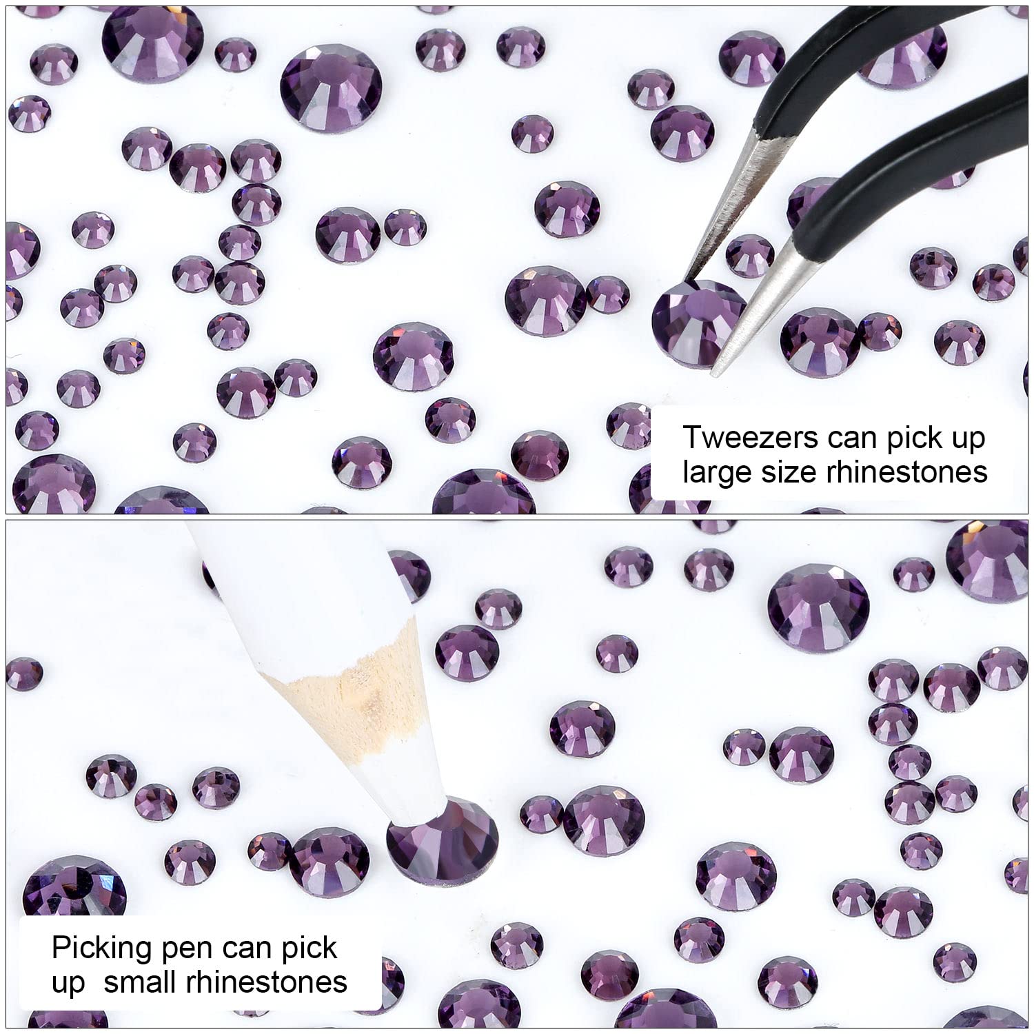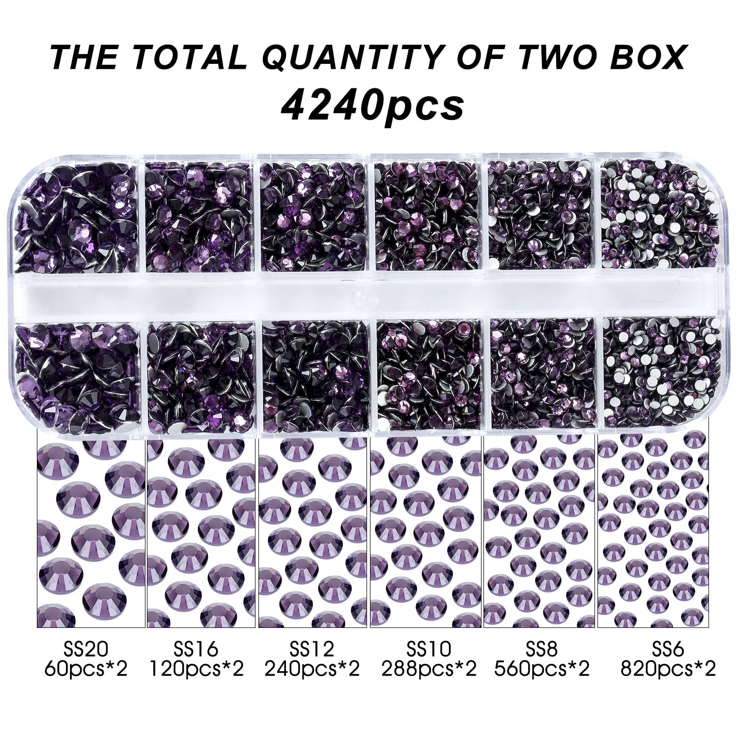 4240Pcs Flatback Purple Rhinestones Glass Crystal Gemstones for Nail Art Face Makeup Bling Round with Tweezers and Picking Pen (SS6~SS20 Set)