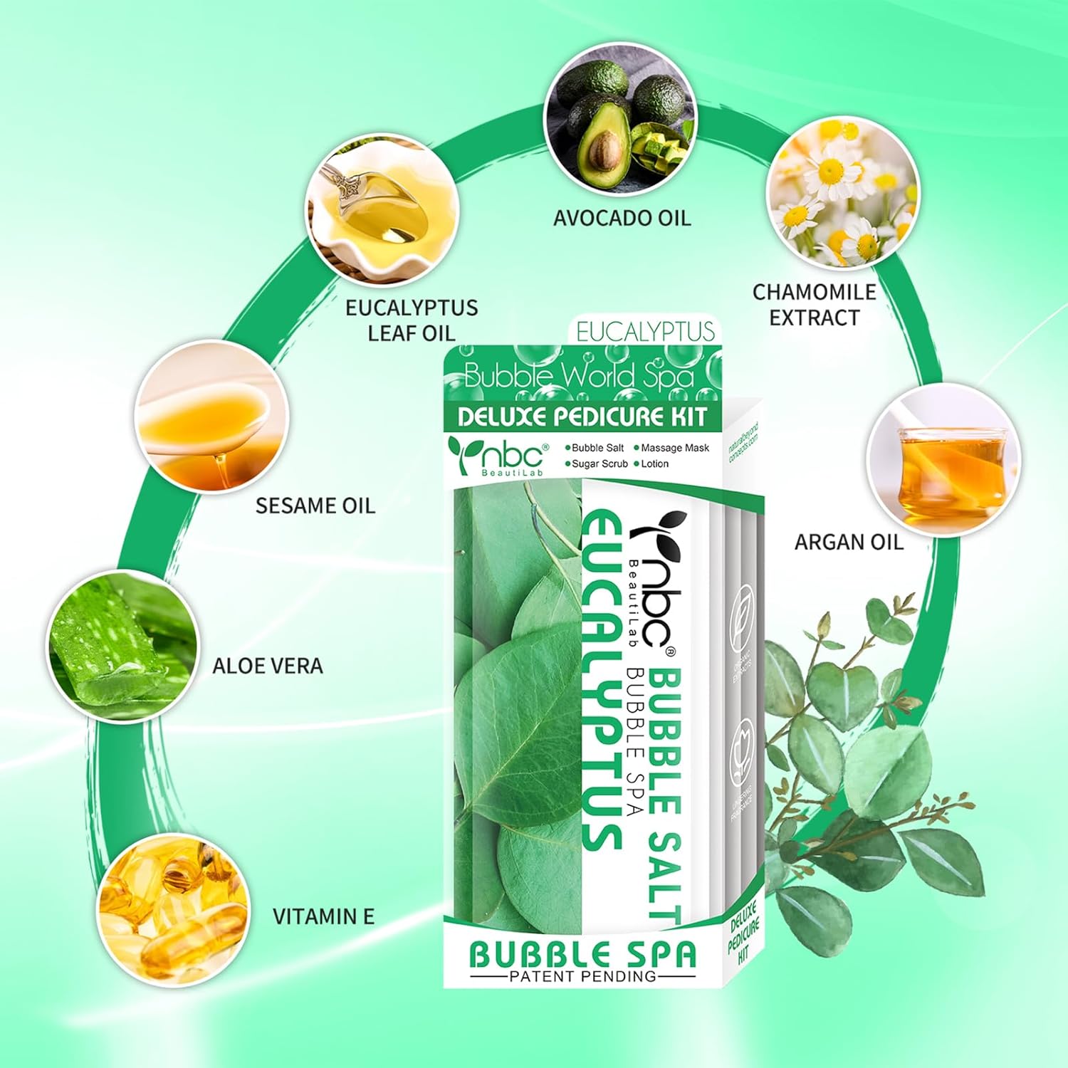 Pedicure Kit Foot Soak Set: Bubble Salt, Sugar Scrub, Massage Mask, Massage Lotion in a Box, 4 Step Foot Spa Kit for Dry Feet,Tired Feet (1 Set Eucalyptus)