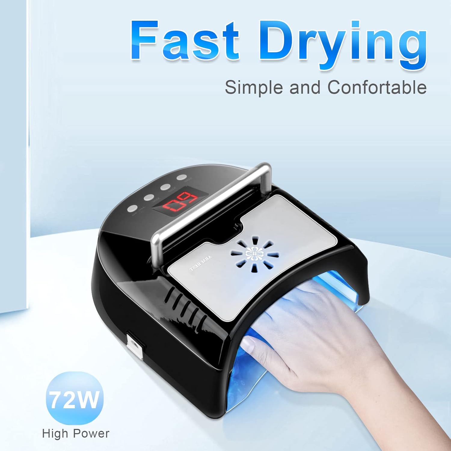 • 【72W High Power & 2X Cure Faster】 The strong power 72W UV LED lamp for gel nails come with UV+LED dual light sources,your average curing time is shortened by 50% than the traditional photo-therapy lamp. Save curing time and enhance the nail art experience for you and your customers.
