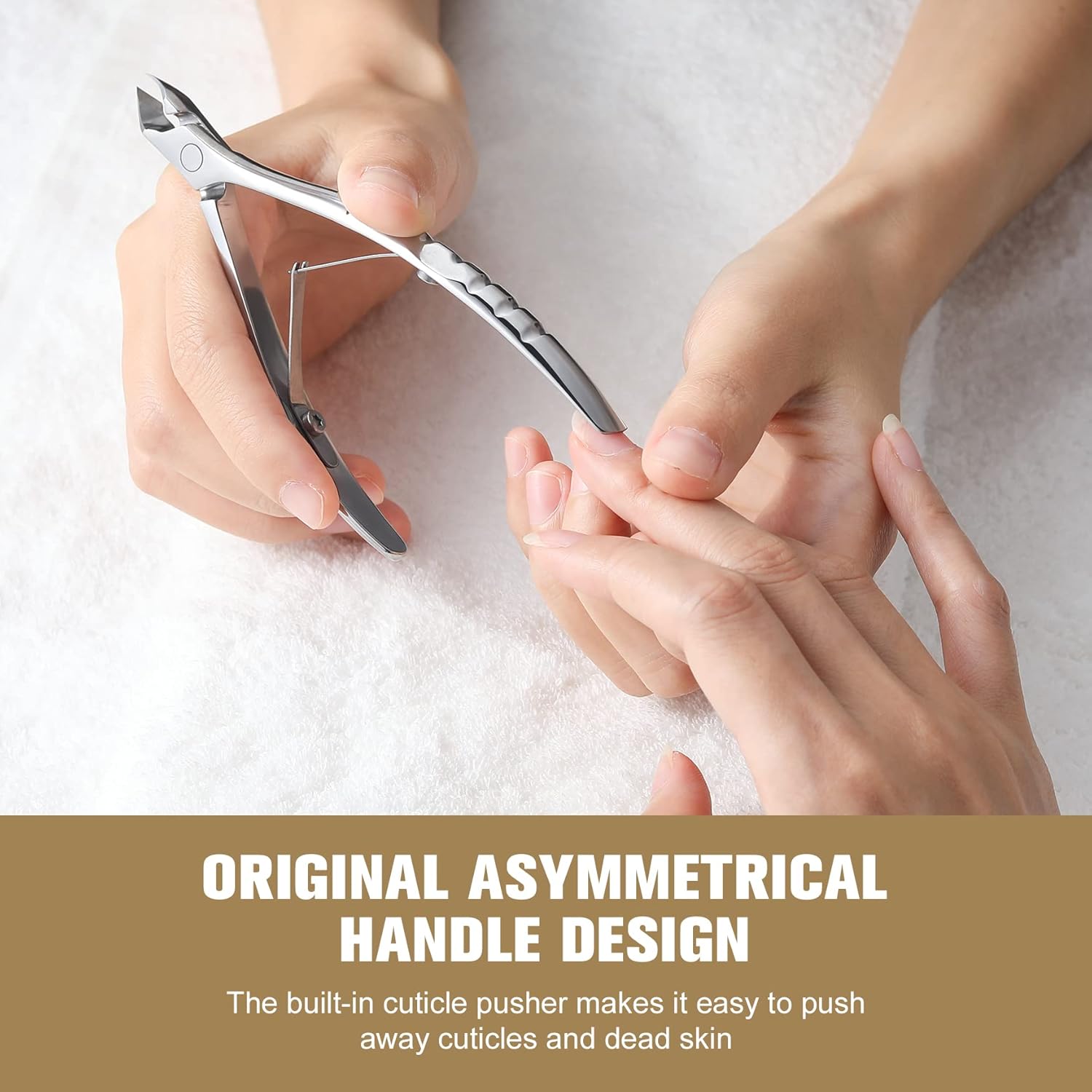 - ERGONOMIC AND FLAWLESS APPLICATION: The manicure set features a double spring design that gives precise cuts. The handles of our nail nipper for cuticles are asymmetrical, textured, carved, and anti-slip, providing greater accuracy in little time