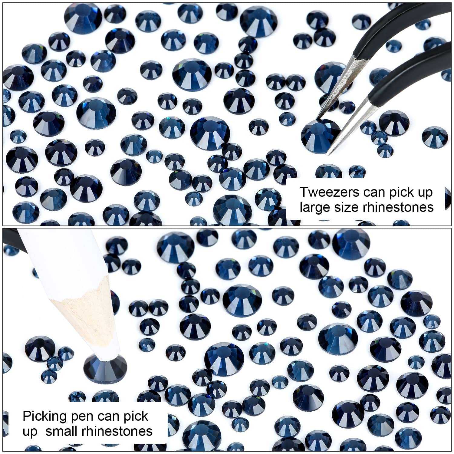 - 💎How to use: Tweezers and Picking Pen gem picker to pick rhinestones, there is no glue on the bottom of the rhinestones, additional nail gel is required, or other professional makeup or nail glue.