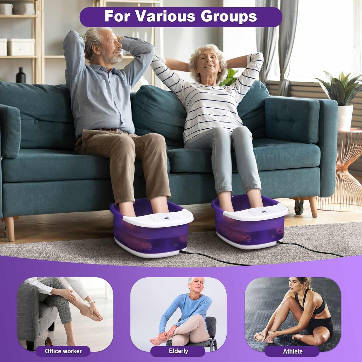 Foot Spa Bath Massager with Heat [2025 Upgraded], Vibration, Temperature Control, Jets, Bubbles and Epsom Salt, Foot Bath Soak Tub with 22 Massage Rollers, Feet Soaking Tub for Relaxation, Purple