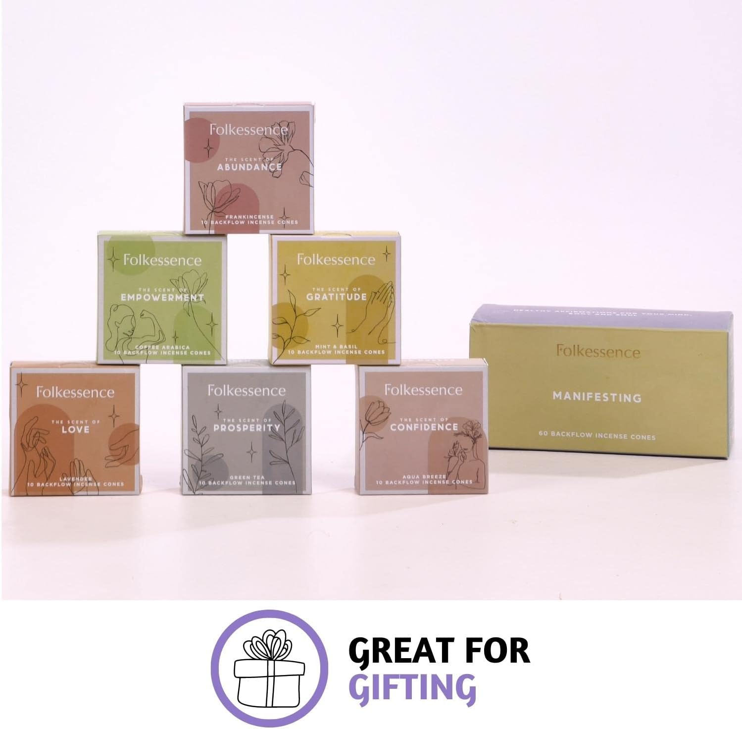 - [ DECORATIVE - Perfect Gift ] : With elegant packaging, our backflow insence cones are a thoughtful gift for your loved ones on housewarming, birthdays, anniversaries, and celebrations. They can also be used to elevate your home décor.