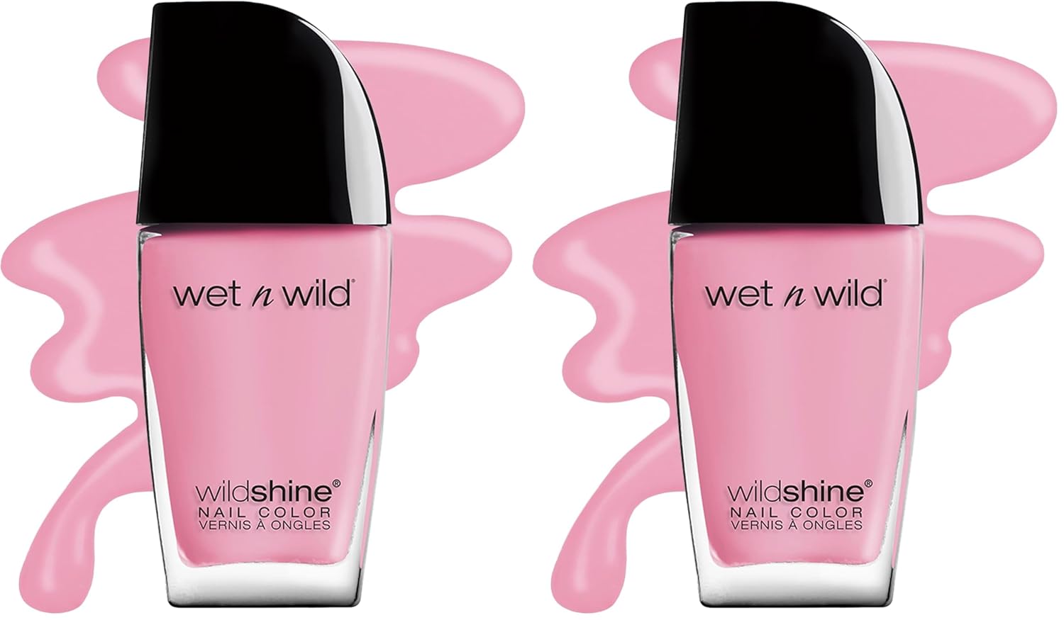 wet n wild Nail Polish Wild Shine, Tickled Pink, Nail Color (Pack of 2)