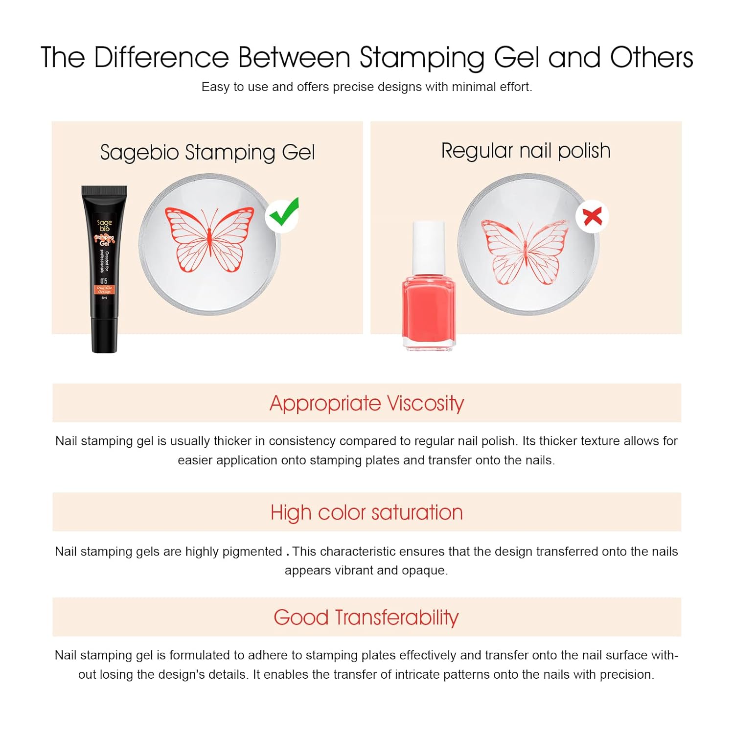 - 【Easy to Use】Nail art clear stamper set Made from natural resin, lower odor, safe ingredients, which lets you stop worrying about hurting to your health. These gels can be scraped repeatedly for stamp plates and stamper. Need to be cured under UV/LED lamp.