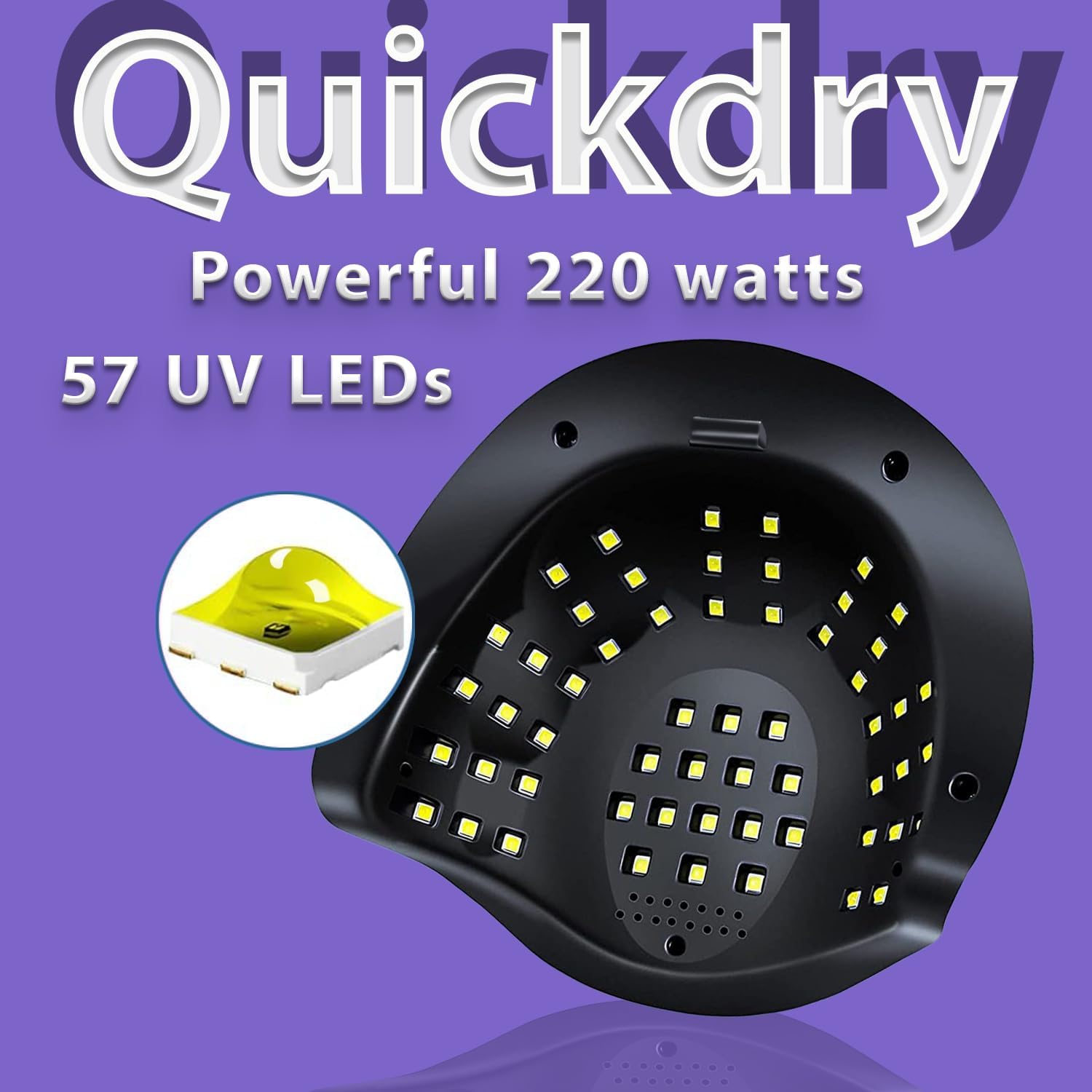 W&H 220W LED UV Light Dryer for Nails Gel Polish Lámpara para Uñas 57 LEDs 4 Timer Preset, Auto On Fingernail Toenail 6ft Powercord