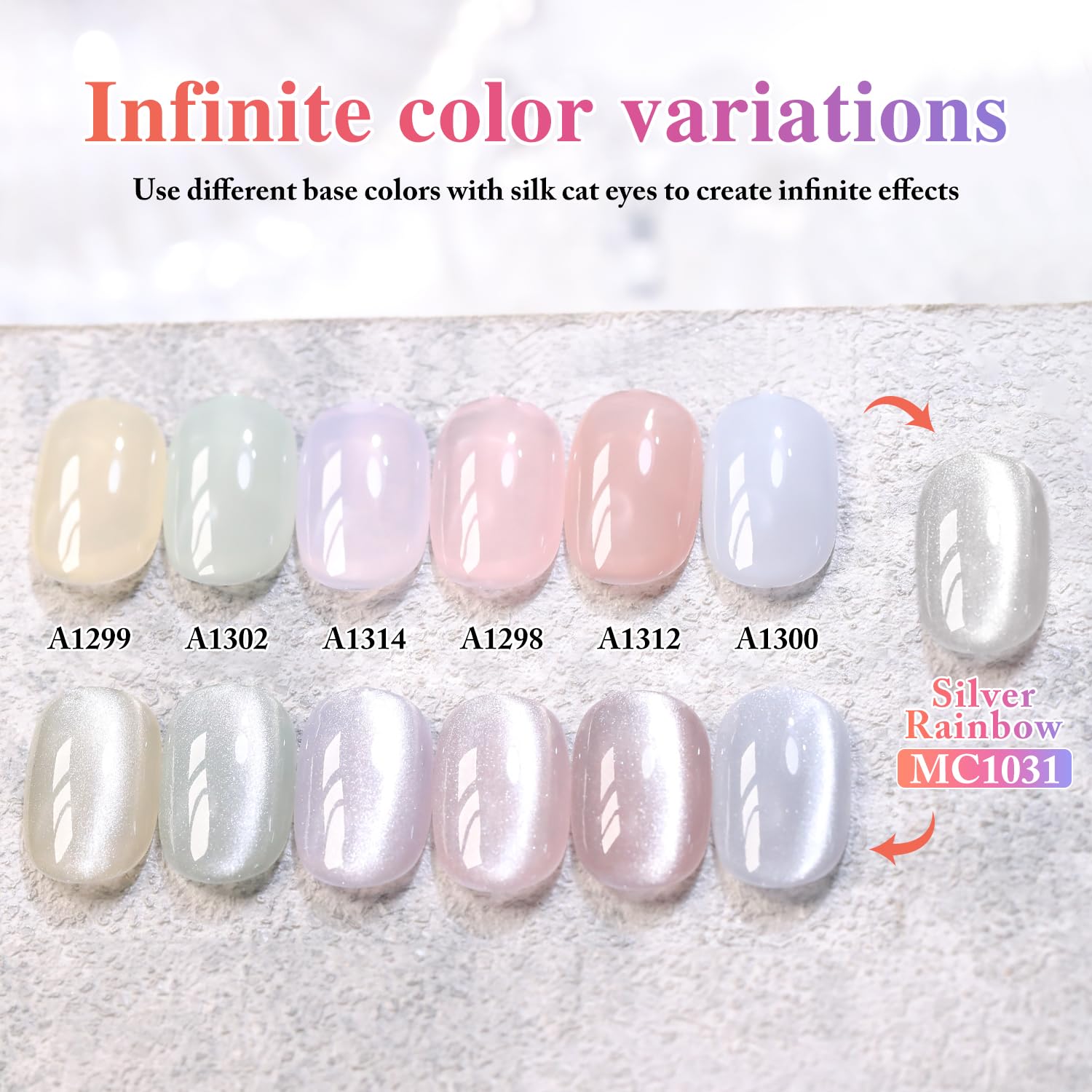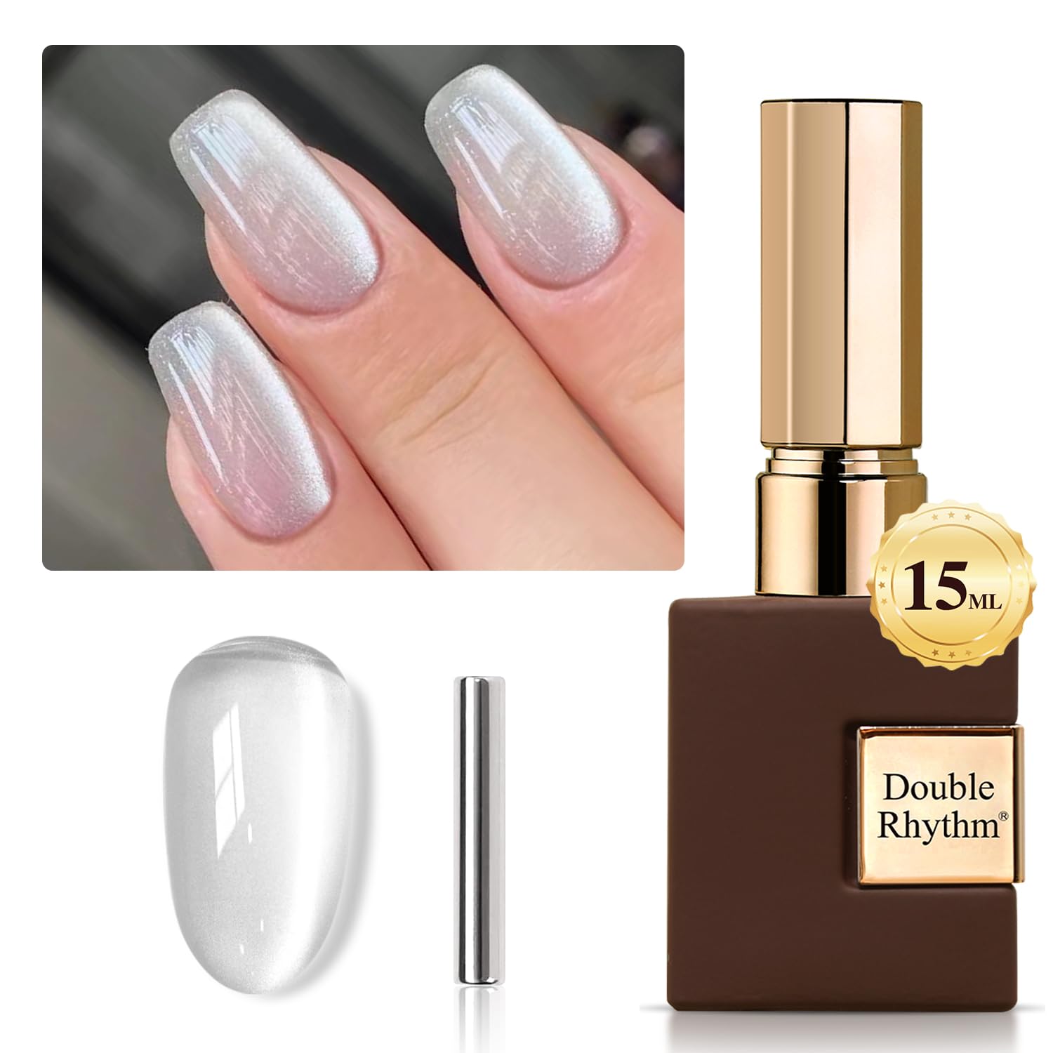 - Cat Eye Gel Nail Polish : Double Rhythm cat eye gel nail polish kit includes 1 color 15ml / 0.5 fl.oz gel nail polish. The cat eye gel can be combined with different bacse colors arbitrarily, you can get different colors nail art.You can use different base coat to creat different sytles.