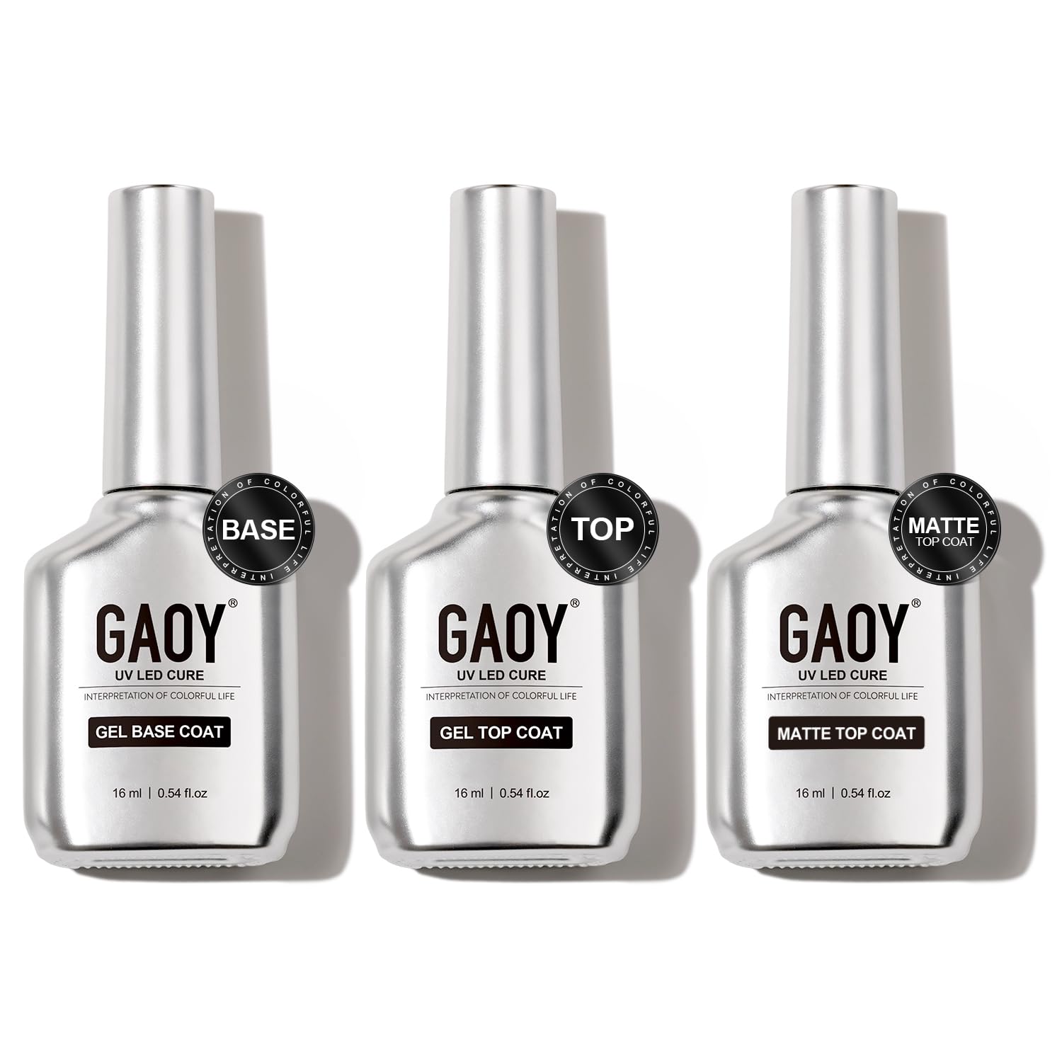 GAOY Gel Top Coat, Matte Top and Base Coat Set, 3 Pcs 16ml Glossy Matte No Wipe Combination for UV Light Cure Gel Nail Polish