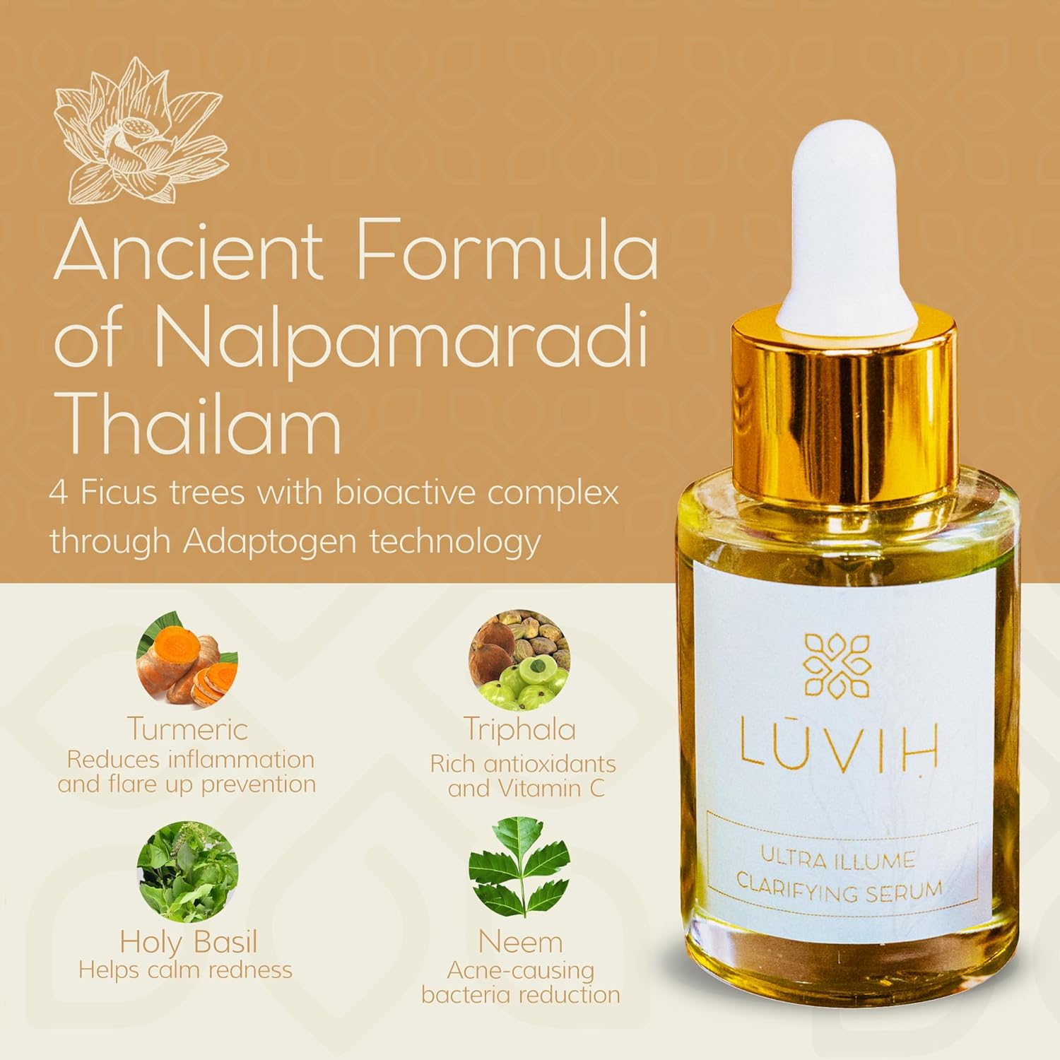 LUVIH Ultra Illume Dark Spot Remover & Clarifying Face Serum – Ayurvedic Acne Scar & Blemish Treatment for Women & Men – Natural Skincare for Acne-Prone, Uneven Skin – 30 mL