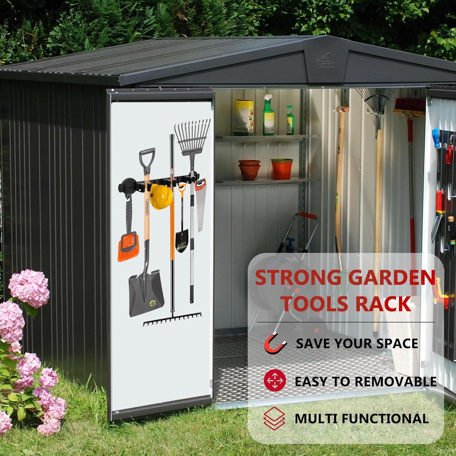 - [3 Racks 4 Hooks]: 3 racks and 4 hooks and is usually used to hang and store multiple mops or other cleaning tools. This rack is the perfect solution to reduce clutter, increase space, keep items in order, and quickly find what you need