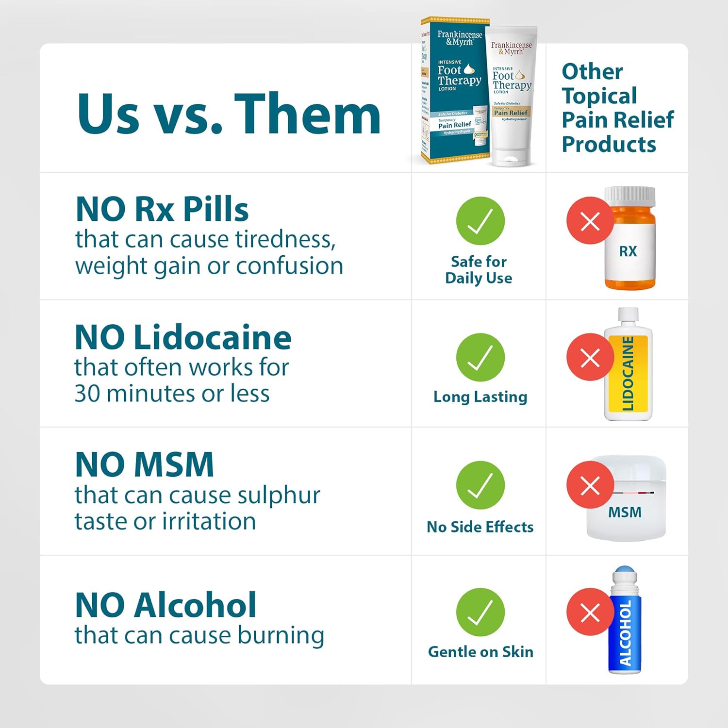 - Frankincense & Myrrh Intensive Foot Therapy Lotion: The same great Intensive Foot Therapy Lotion now in a 2 PACK (6 oz total). The power of 9 essential oils and Lanolin, Shea and Cocoa Butter temporarily relieves foot and heel pain while providing intense hydrating repair to restore dry, rough skin now in a 2 PACK option.