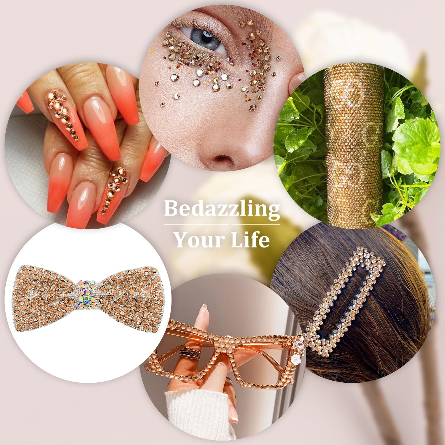 Resin Rhinestones for Crafting, 1 Box Champagne Multi Sizes Flatback Bedazzling Crystals for Crafts Nail Art Deco, Non Hotfix Gems Charms for Tumbler Shoes Clothing Fabric Face Makeup