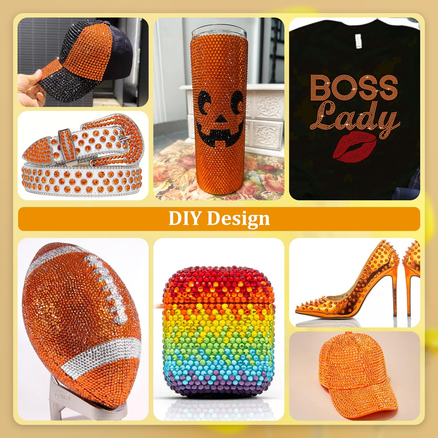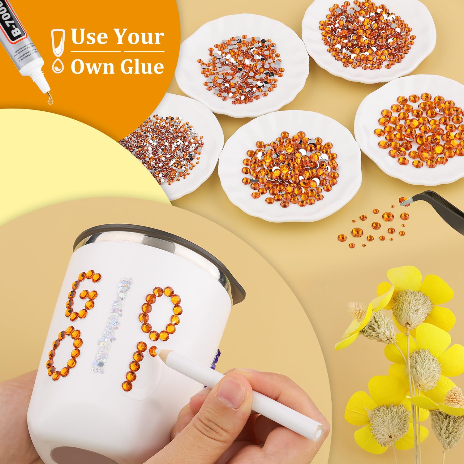 Resin Rhinestones for Crafting, 1 Box Orange Multi Sizes Flatback Bedazzling Crystals for Crafts Nail Art Decoration, Non Hotfix Gems Charms for Tumbler Shoes Clothing Fabric Face Makeup