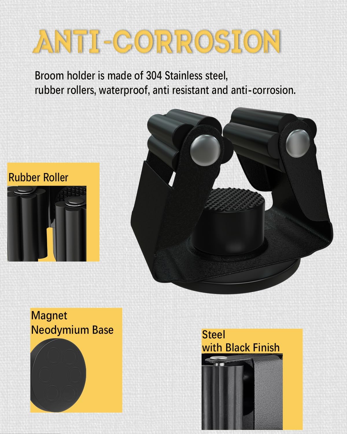 - Steel Material: magnetic broom and mop holder for fridge is made of sus304 stainless steel; anti corrosion and tarnishing; adapting rubber roller; building to resist daily scratches; much strong and sturdy than plastic one in the market