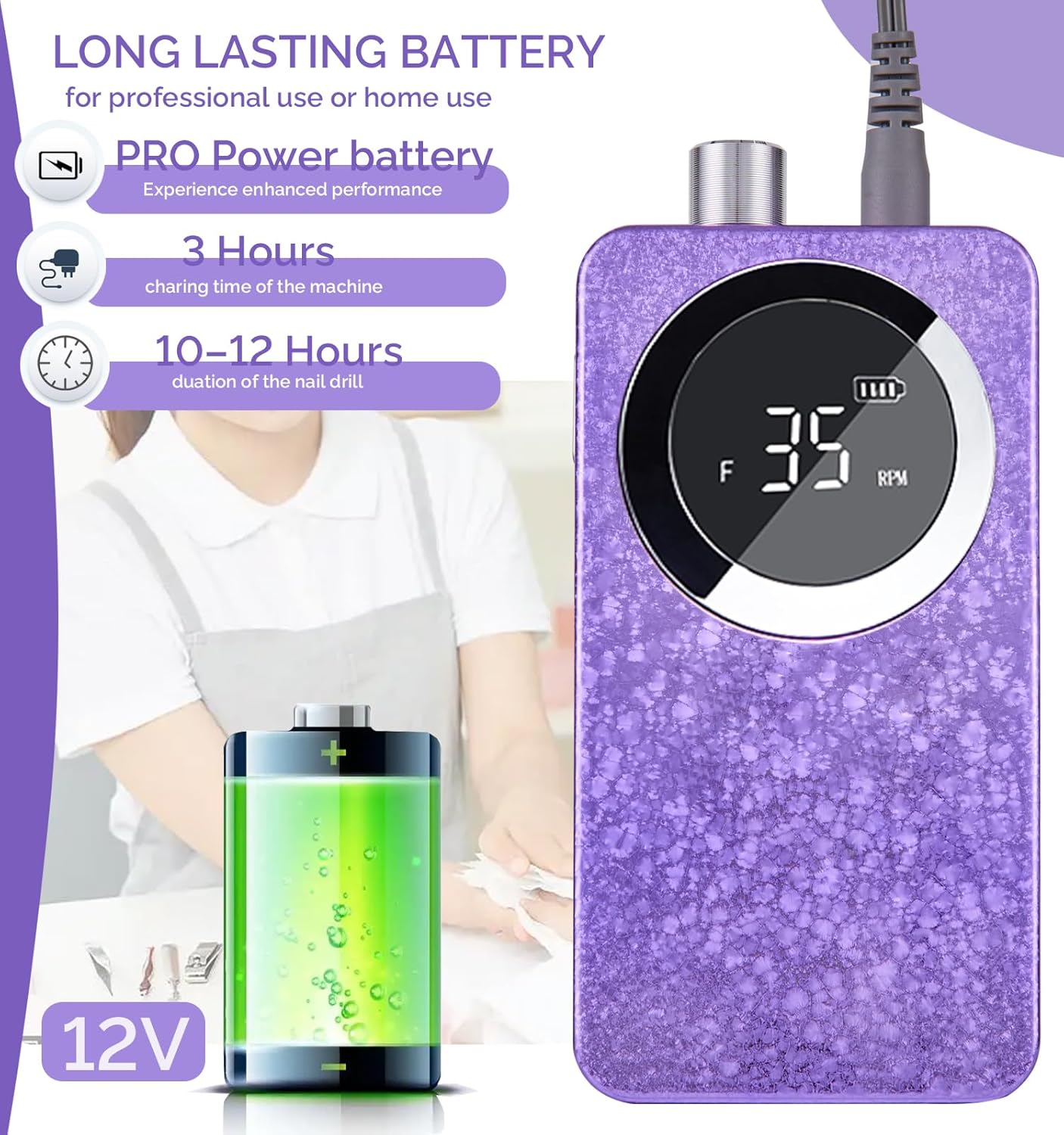 - 【Salon-Grade Power & Precision】 35000 RPM adjustable speed (via easy-turn rotary dial) makes this professional nail drill perfect for acrylic/gel removal, cuticle trimming, callus smoothing, and even intricate nail art. Vibration-free motor ensures steady control—whether you’re a beginner practicing at home or a pro handling back-to-back salon clients.