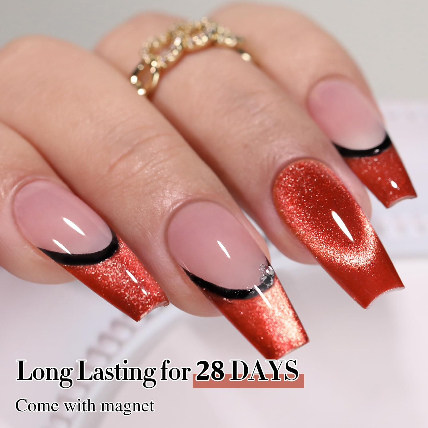 Double Rhythm 0.5 OZ Cat Eye Gel Polish with Magnet 15ML Holographic Glitter Shimmer Translucent Jelly Color Magnetic Nail Polish Salon DIY at Home (Red-MC1055)