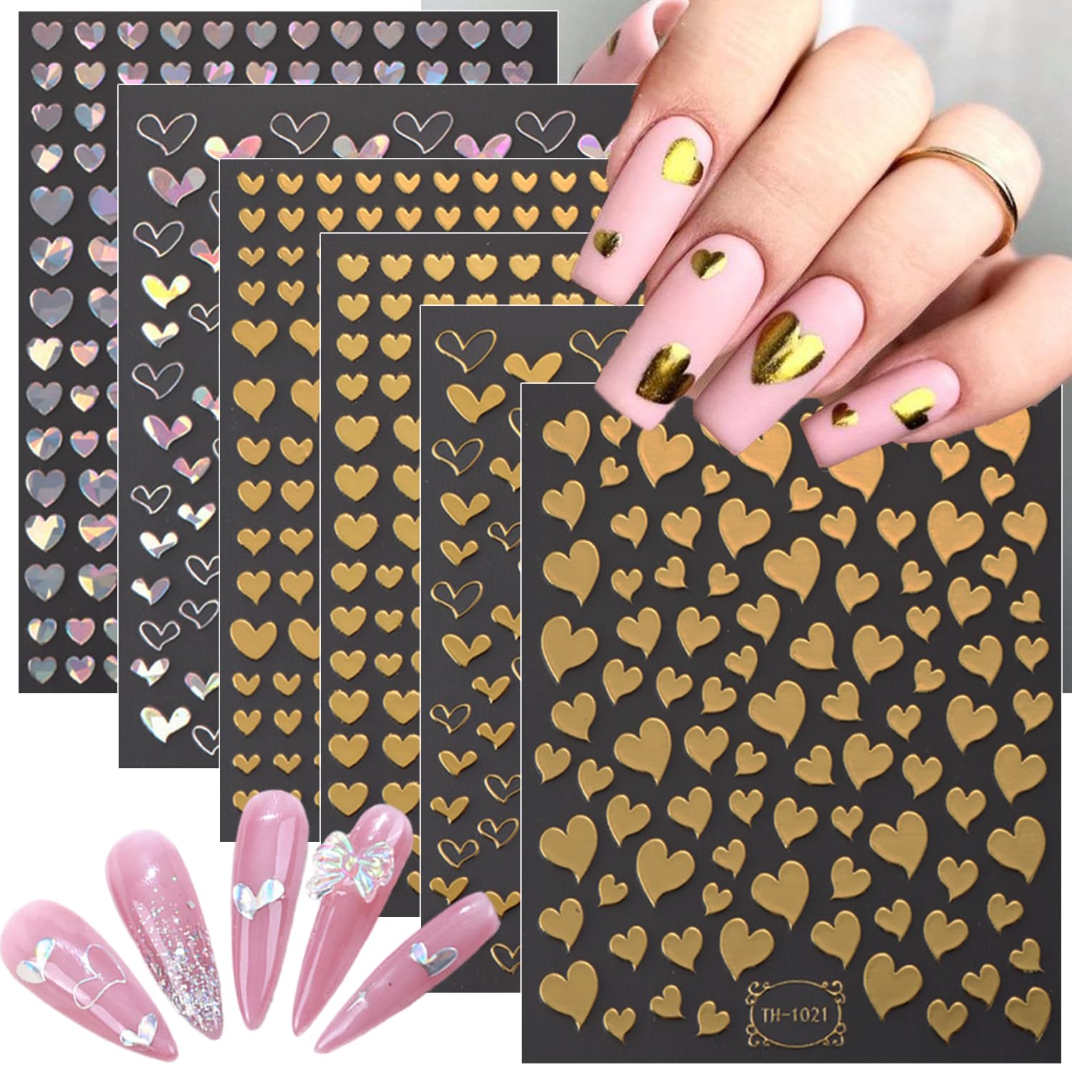 - Easy to Use- These love heart nail decals are self-adhesive and requires no glue, just remove sticker then stick this 3d nail decals on your nail. Apply top coat gel to seal to make the stickers last longer.