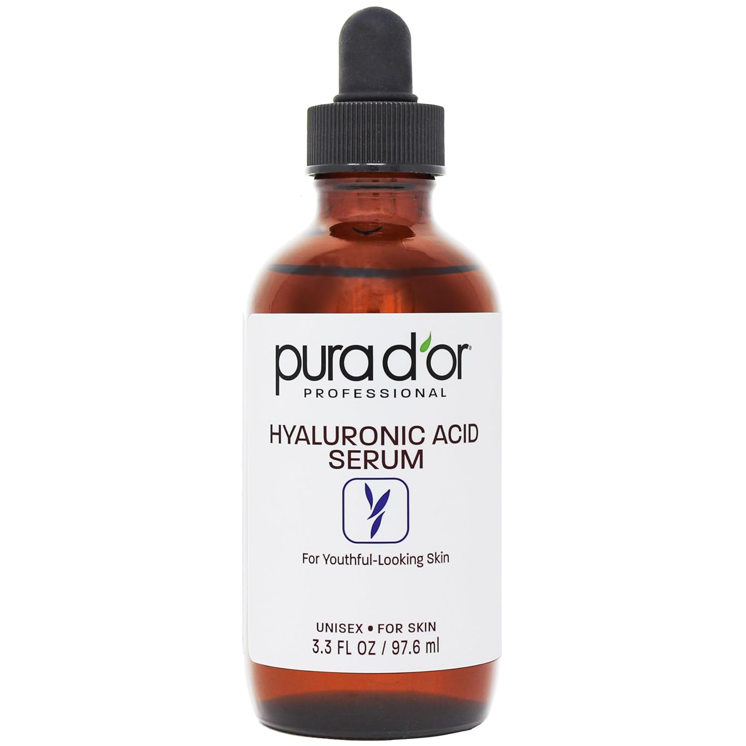 PURA D'OR 3.3 Oz Hyaluronic Acid Serum For Deep Hydration - Anti-Aging, Plumping & Moisturizing Formula For Smooth, Supple Skin - Natural Skincare Boost - Fine Lines & Wrinkle Reducer - Travel Size