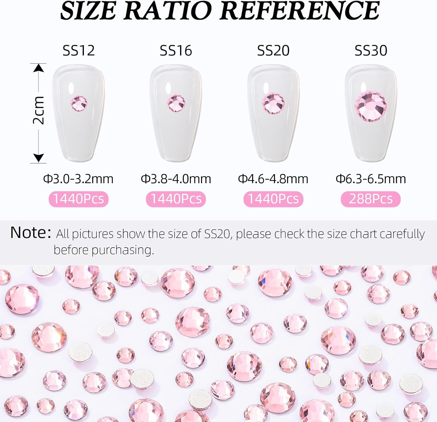 Pink Flatback Rhinestones, Glass Rhinestones for Nail Art and Craft, Glue Fix, Loose Crystal Gemstones(Pink, SS30, 288pcs, 6.4-6.6mm)