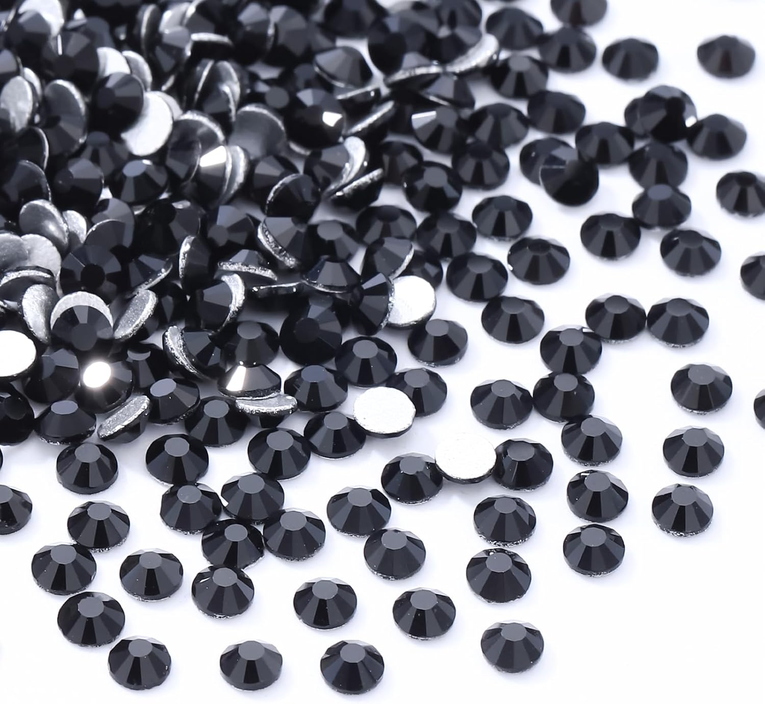 Black Flatback Rhinestones, Glass Rhinestones for Nail Art and Craft, Glue Fix, Loose Crystal Gemstones(Black, SS10, 1440pcs, 2.7-2.8mm)