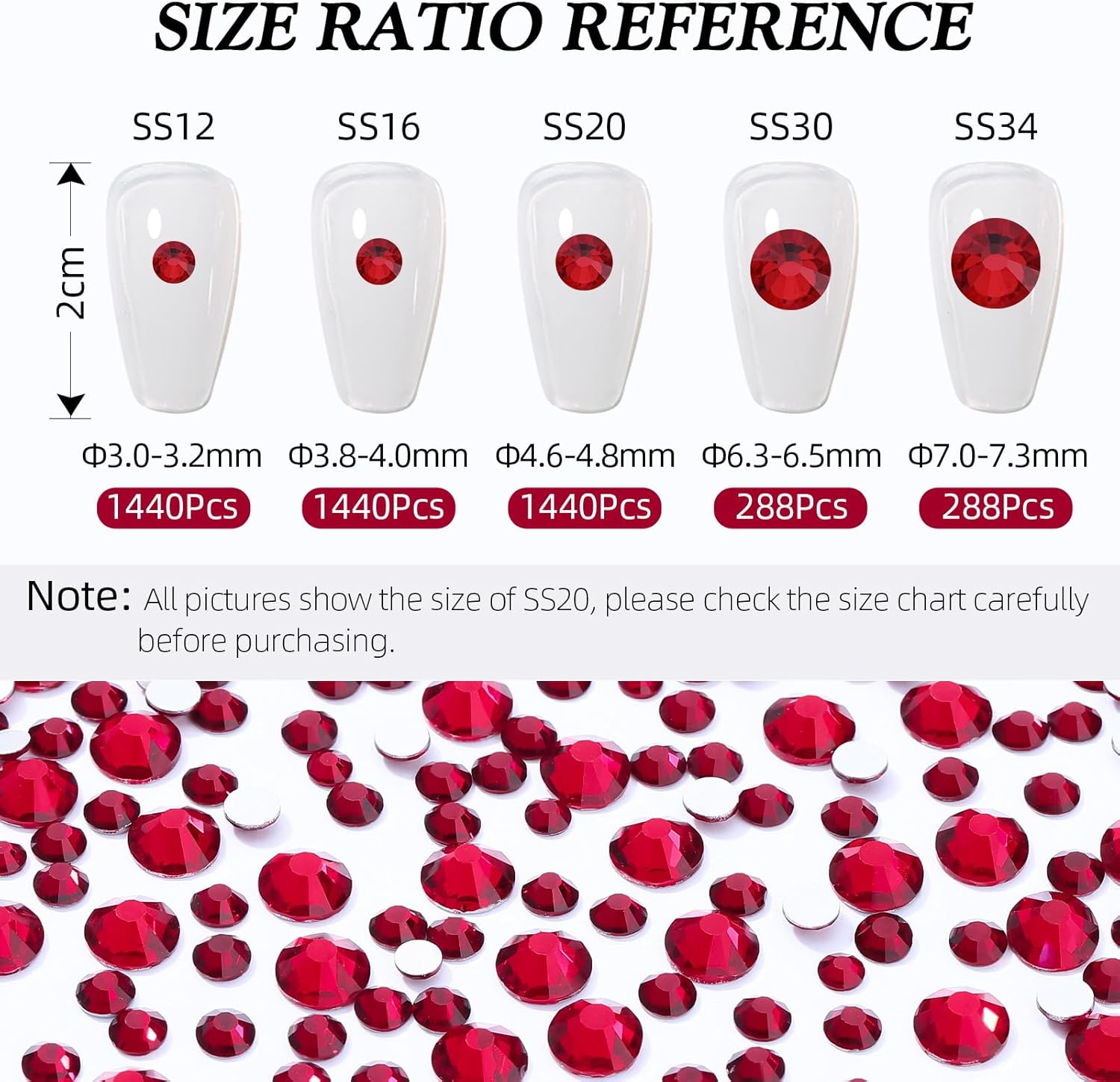 Siam Flatback Rhinestones, Glass Rhinestones for Nail Art and Craft, Glue Fix, Loose Crystal Gemstones(Siam, SS16, 1440pcs, 3.8-4.0mm)