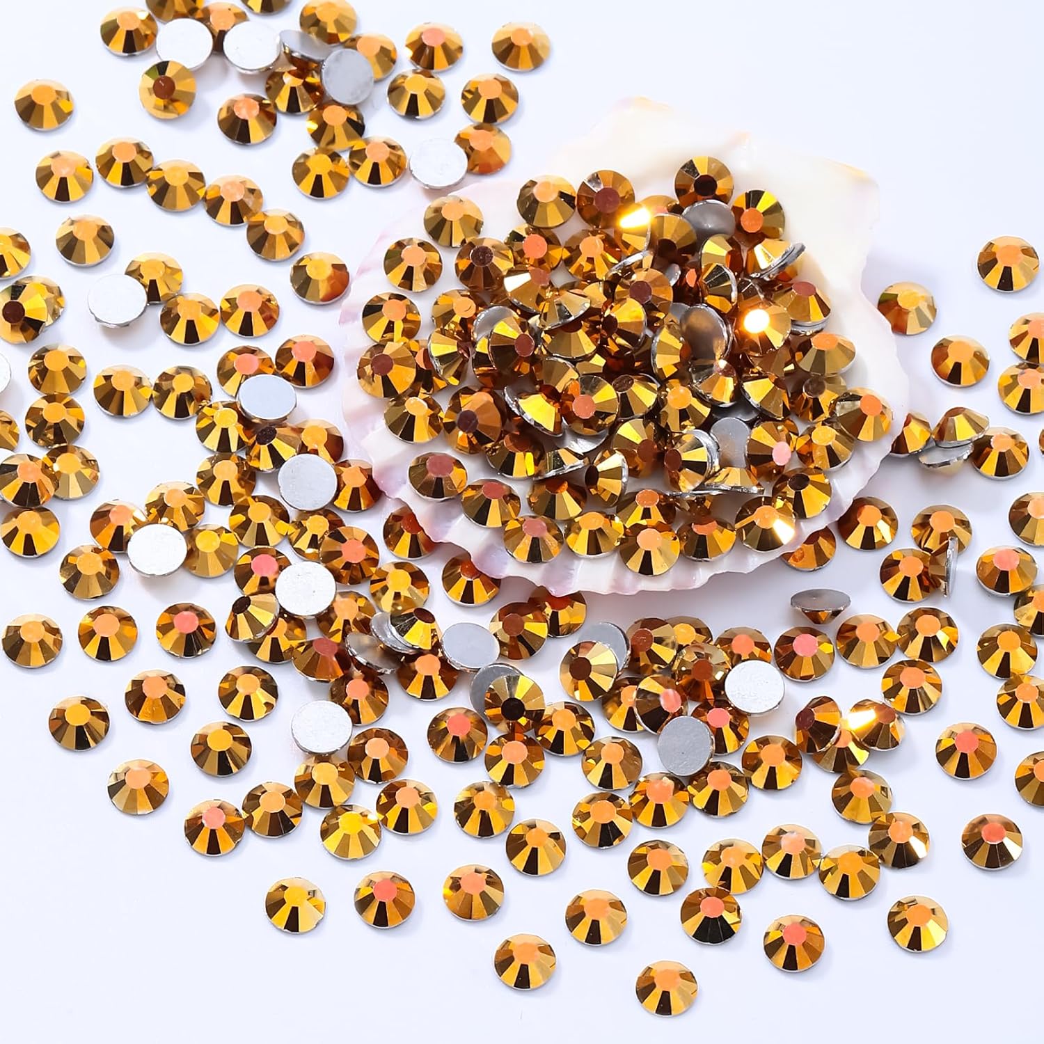 Gold Flatback Rhinestones, Glass Rhinestones for Nail Art and Craft, Glue Fix, Loose Crystal Gemstones(Gold, SS30, 288pcs, 6.4-6.6mm)