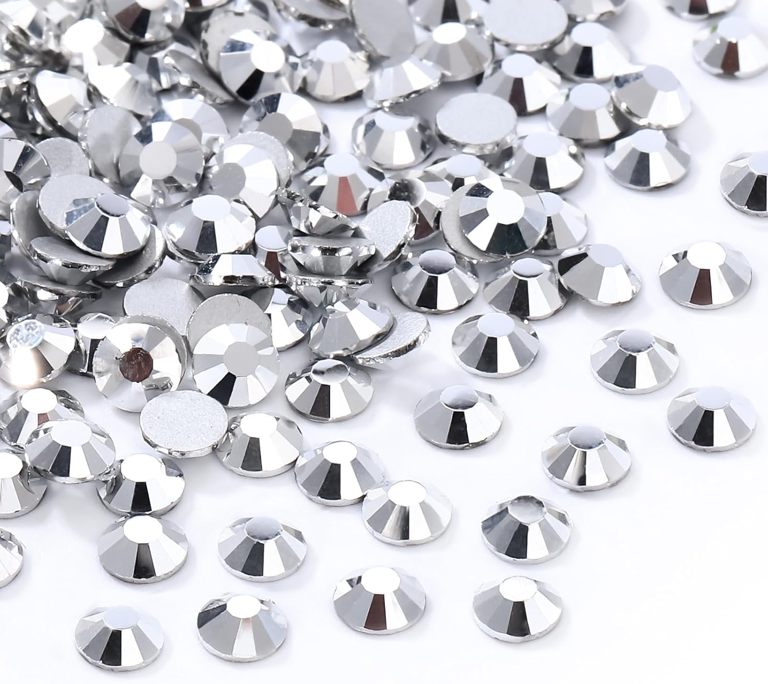 Silver Flatback Rhinestones, Glass Rhinestones for Nail Art and Craft, Glue Fix, Loose Crystal Gemstones(Silver, SS20, 1440pcs, 4.6-4.8mm)