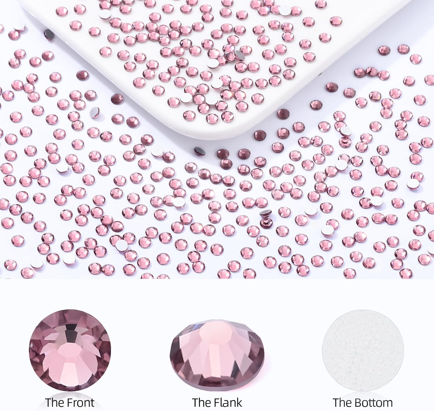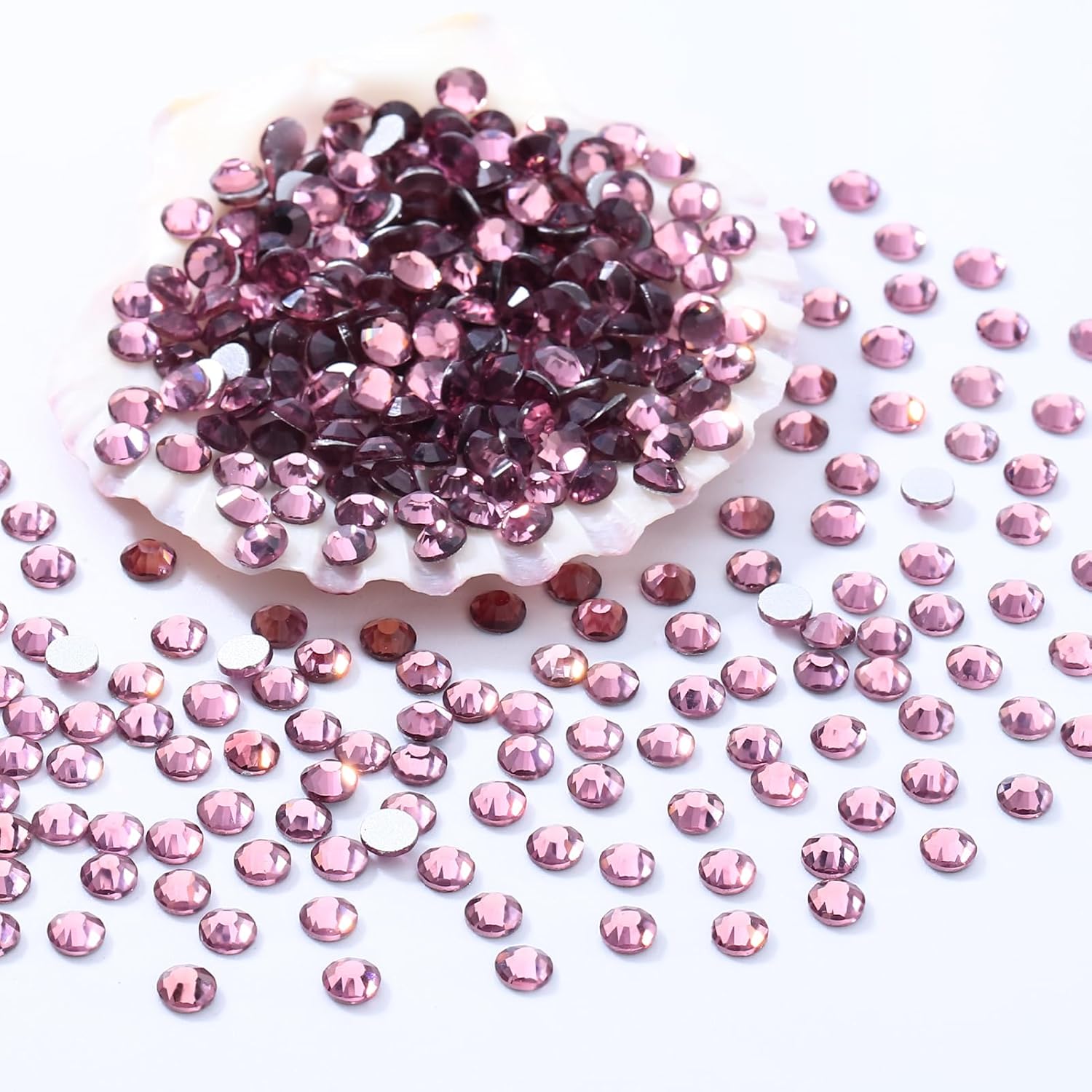 Light Amethyst Flatback Rhinestones, Glass Rhinestones for Nail Art and Craft, Glue Fix, Loose Crystal Gemstones(Lt.Amethyst, SS4, 1440pcs, 1.5-1.7mm)