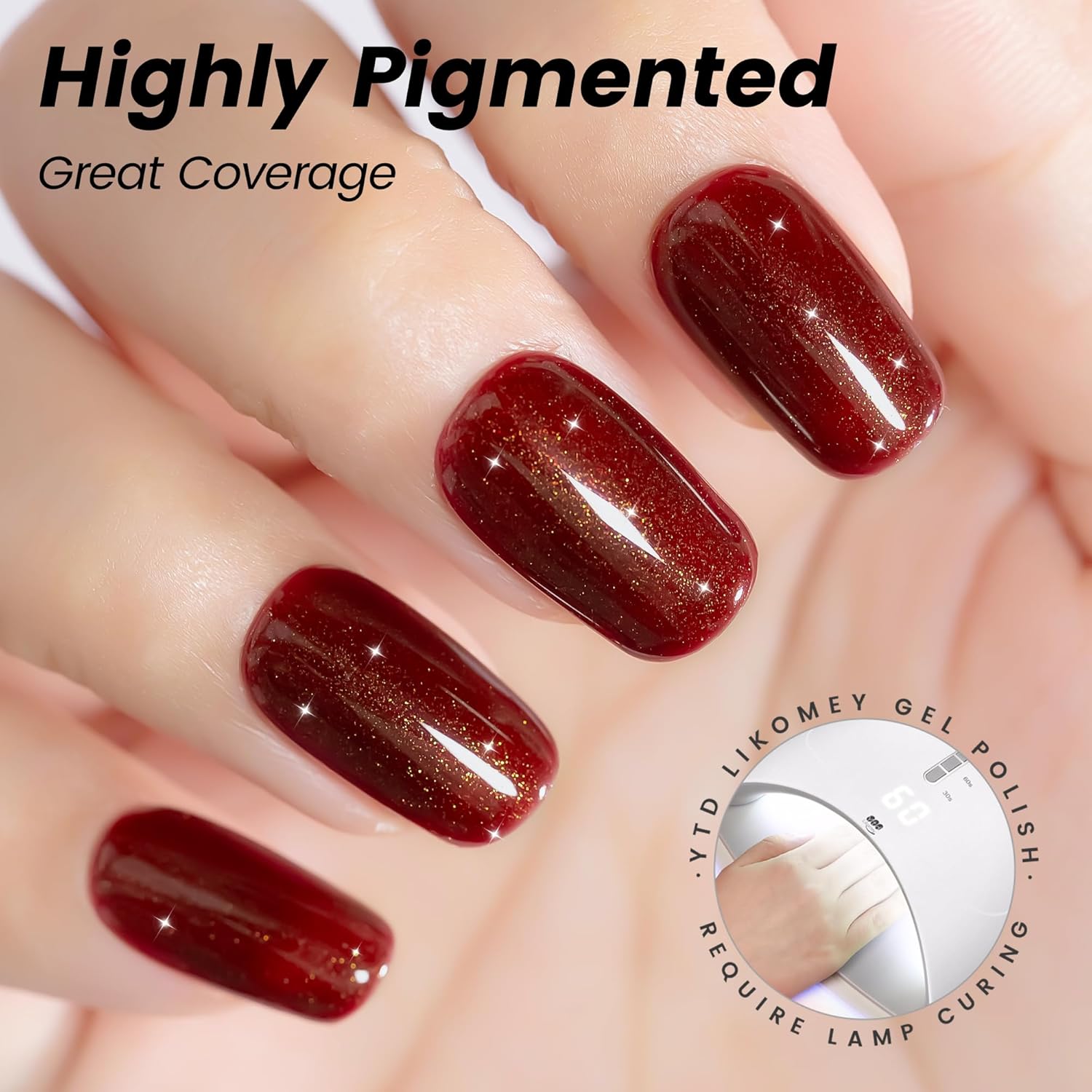 YTD Likomey Glitter Gel Nail Polish,15ml Burgundy Glitter Fall Winter Dark Red Shimmer Shiny Sparkly Salon Home DIY Manicure UV Color Varnish,SF400