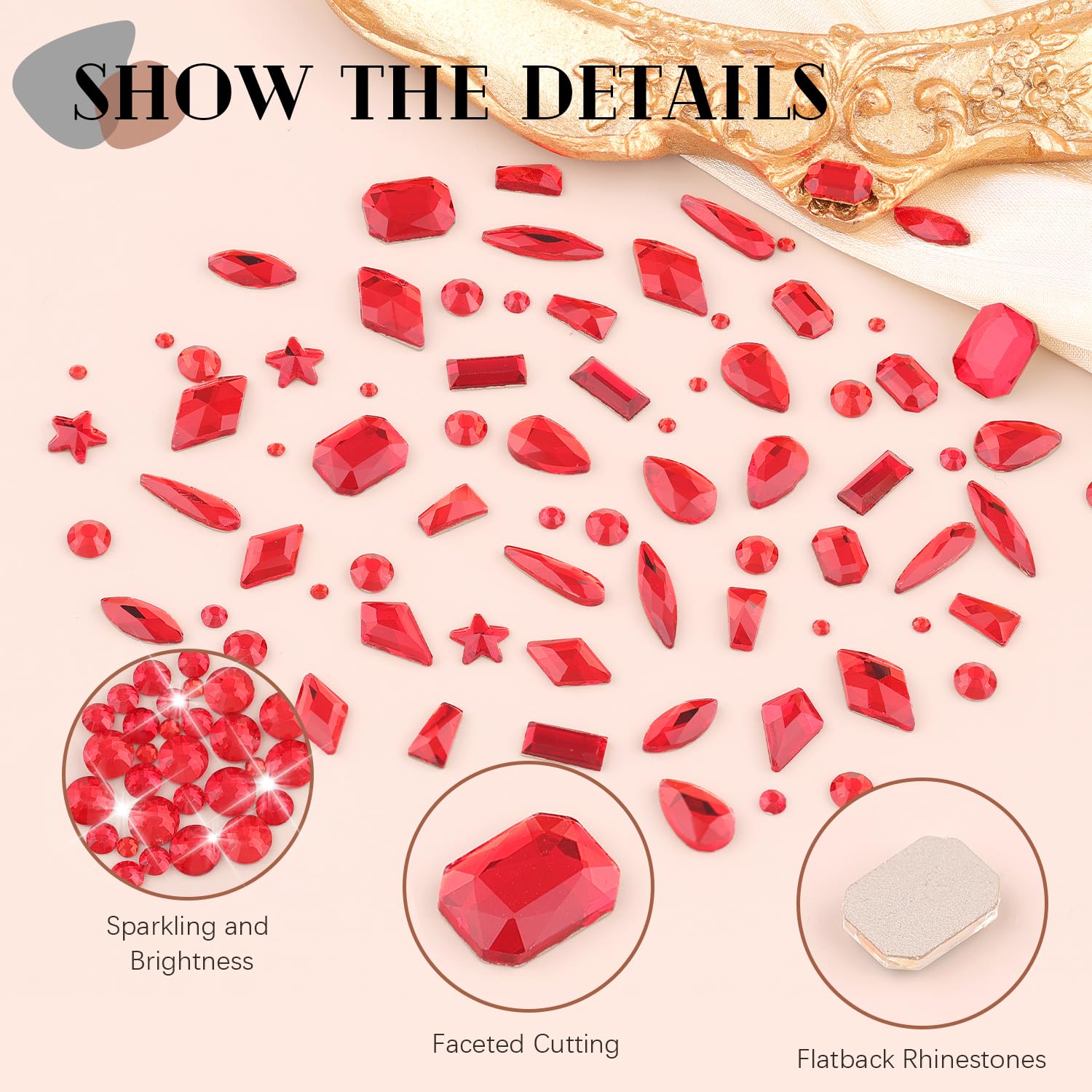 - 💎PACKAGE CONTENT -- The package contains 120Pcs multi shapes flatback gems crystal and 3100Pcs 1.5-4mm round beads, totally 3220Pcs Red rhinestones. Additionally, 1 tweezers for large size gems and 1 pickup pen for small size gems. This rhinestones kit makes it easy for you to make any nail art you like, and will bedazzle your acrylic nails!