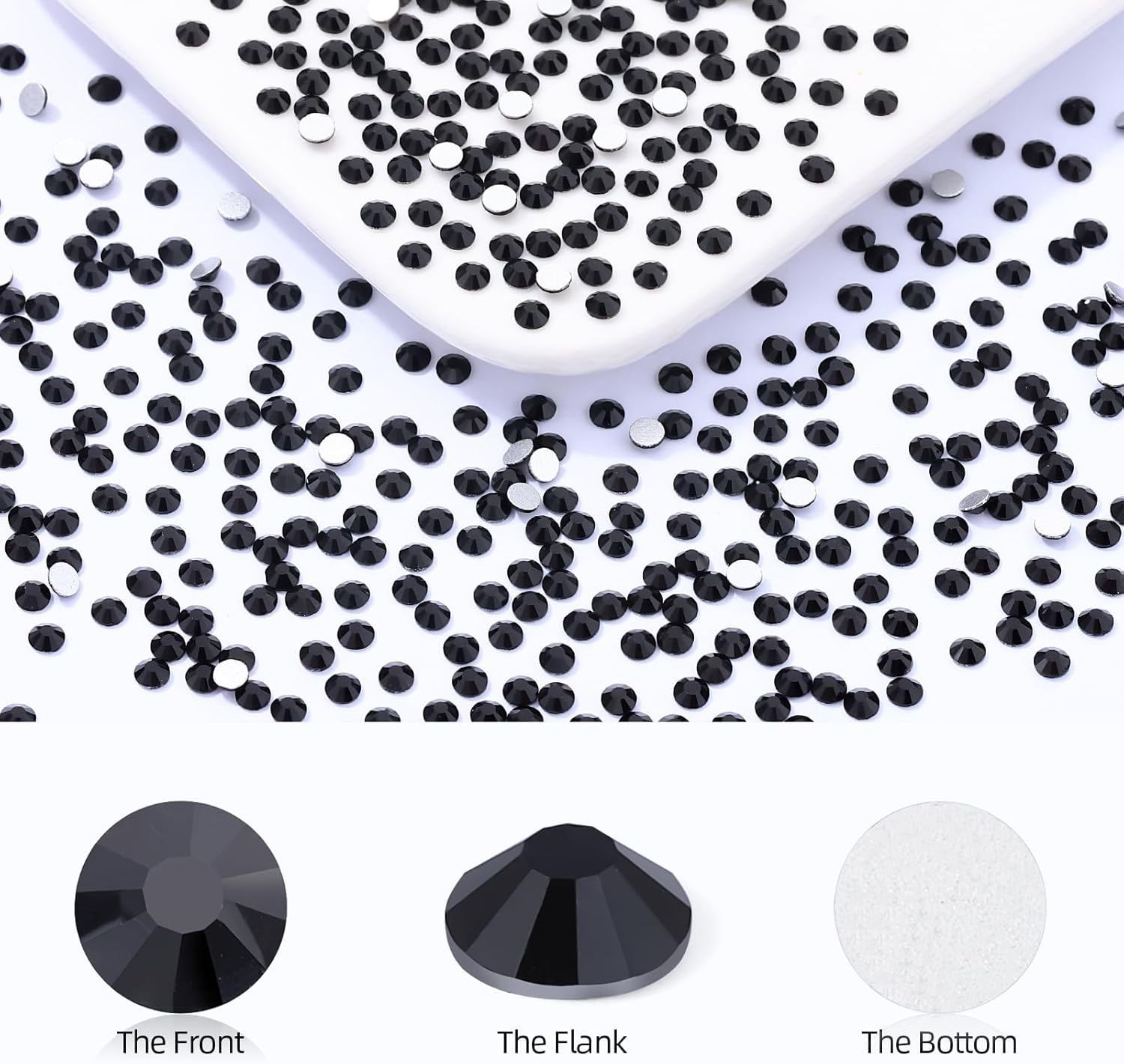Black Flatback Rhinestones, Glass Rhinestones for Nail Art and Craft, Glue Fix, Loose Crystal Gemstones(Black, SS6, 2880pcs, 1.9-2.0mm)