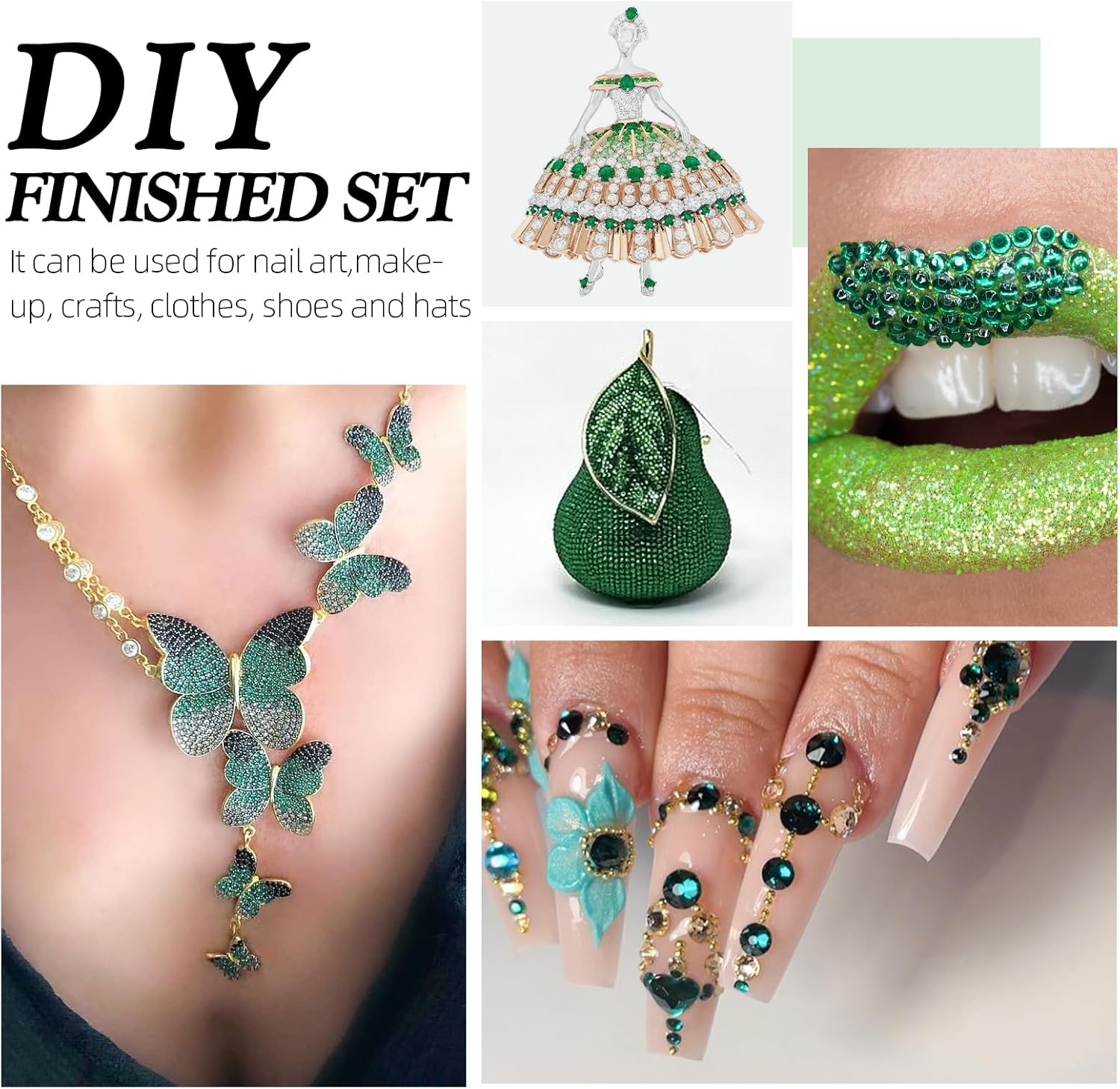 Green Flatback Rhinestones, Glass Rhinestones for Nail Art and Craft, Glue Fix, Loose Crystal Gemstones(Green, SS6, 2880pcs, 1.9-2.0mm)
