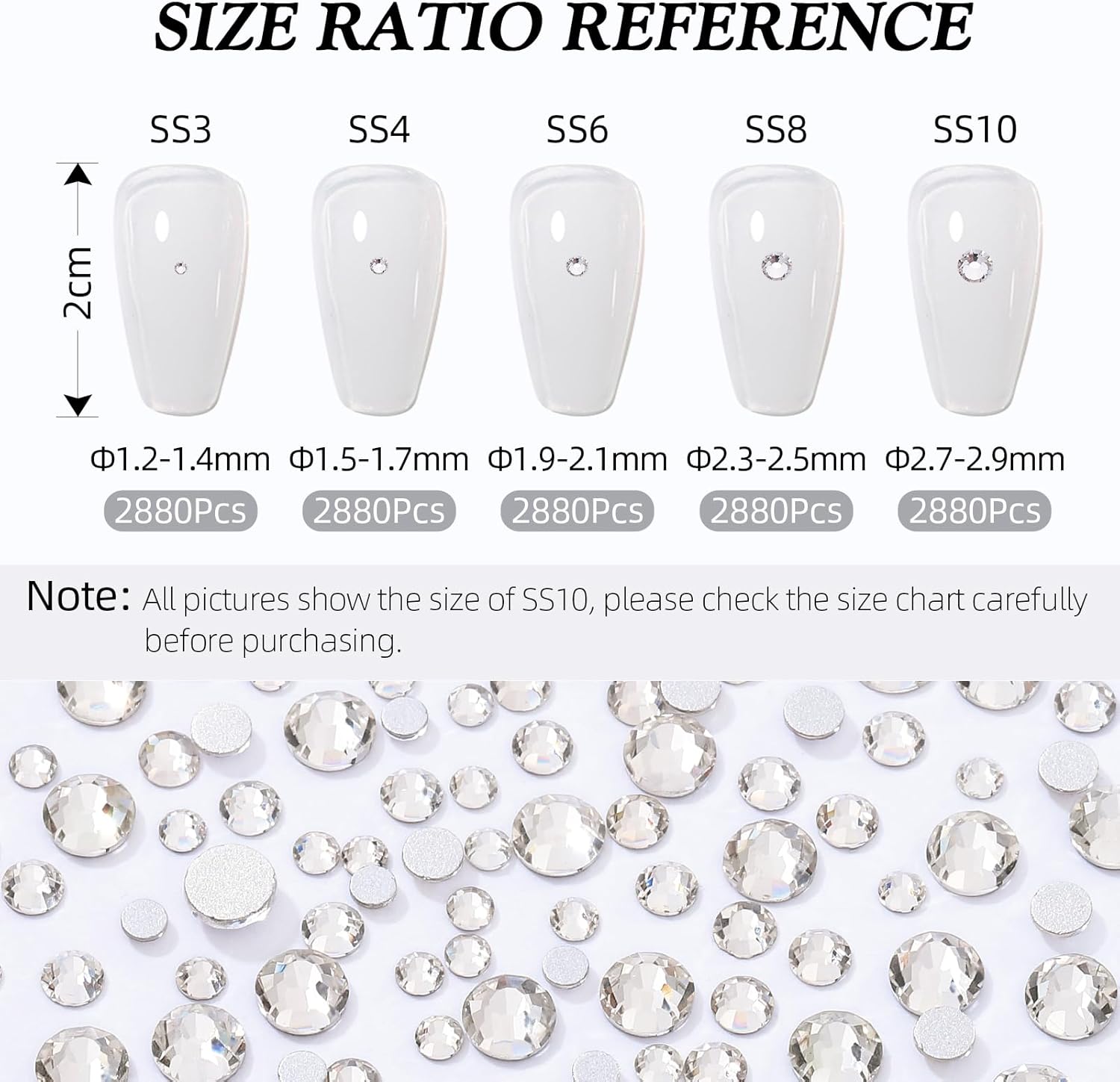 - Product Packaging: Bags packaging SS3 1.3~1.4 MM - 2880 Pcs crystal clear flatback rhinestones.