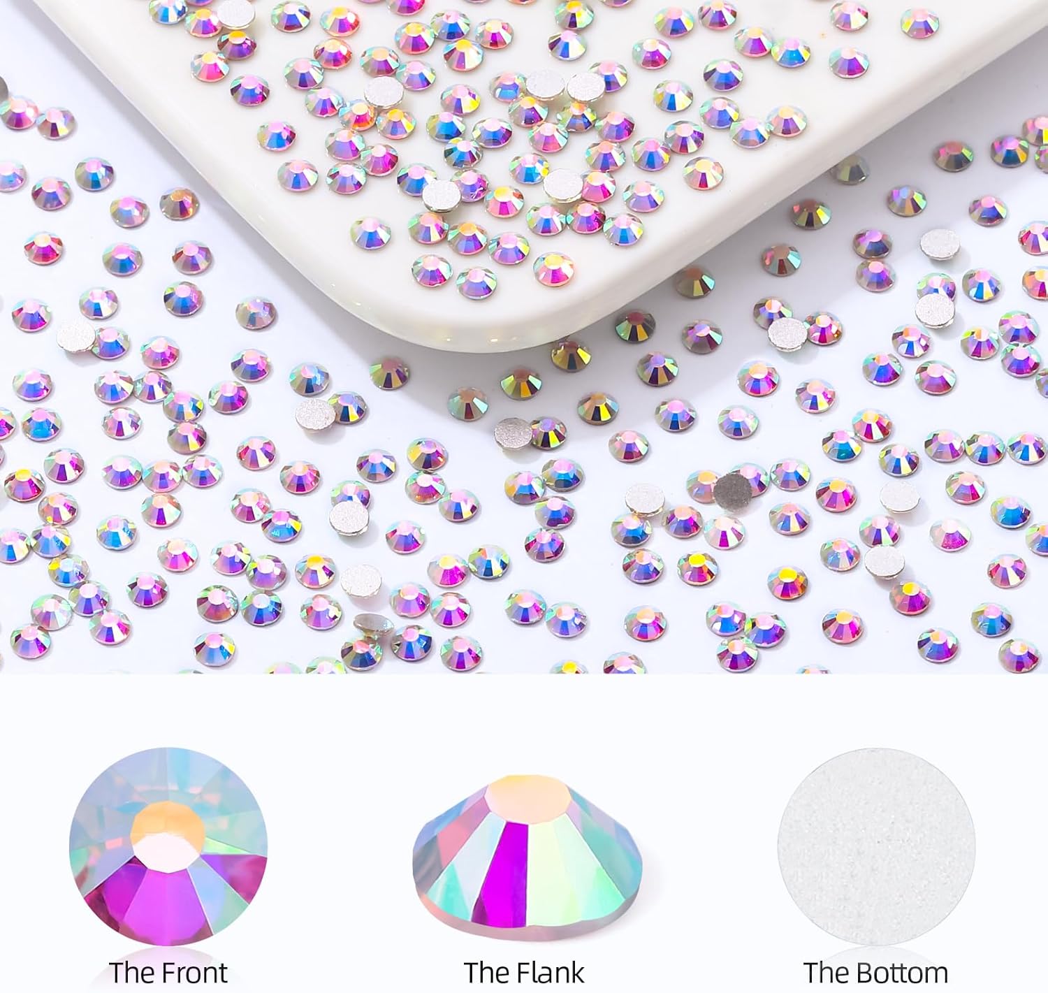 Crystal AB Flatback Rhinestones, Glass Rhinestones for Nail Art and Craft, Glue Fix, Loose Crystal Gemstones(Crystal AB, SS8, 2880pcs, 2.3-2.5mm)